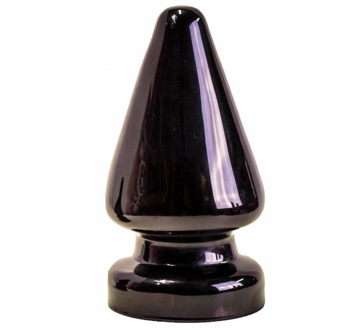 Очень большая пробка для анальной стимуляции и фистинга с ограничительным основанием для безопасного использования выполненная из ПВХ. Под скользкой, блестящей поверхностью
