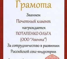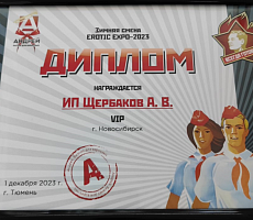ДИПЛОМ EROTIC EXPO 2016 VIP-клиенту лидеру продаж в РФ