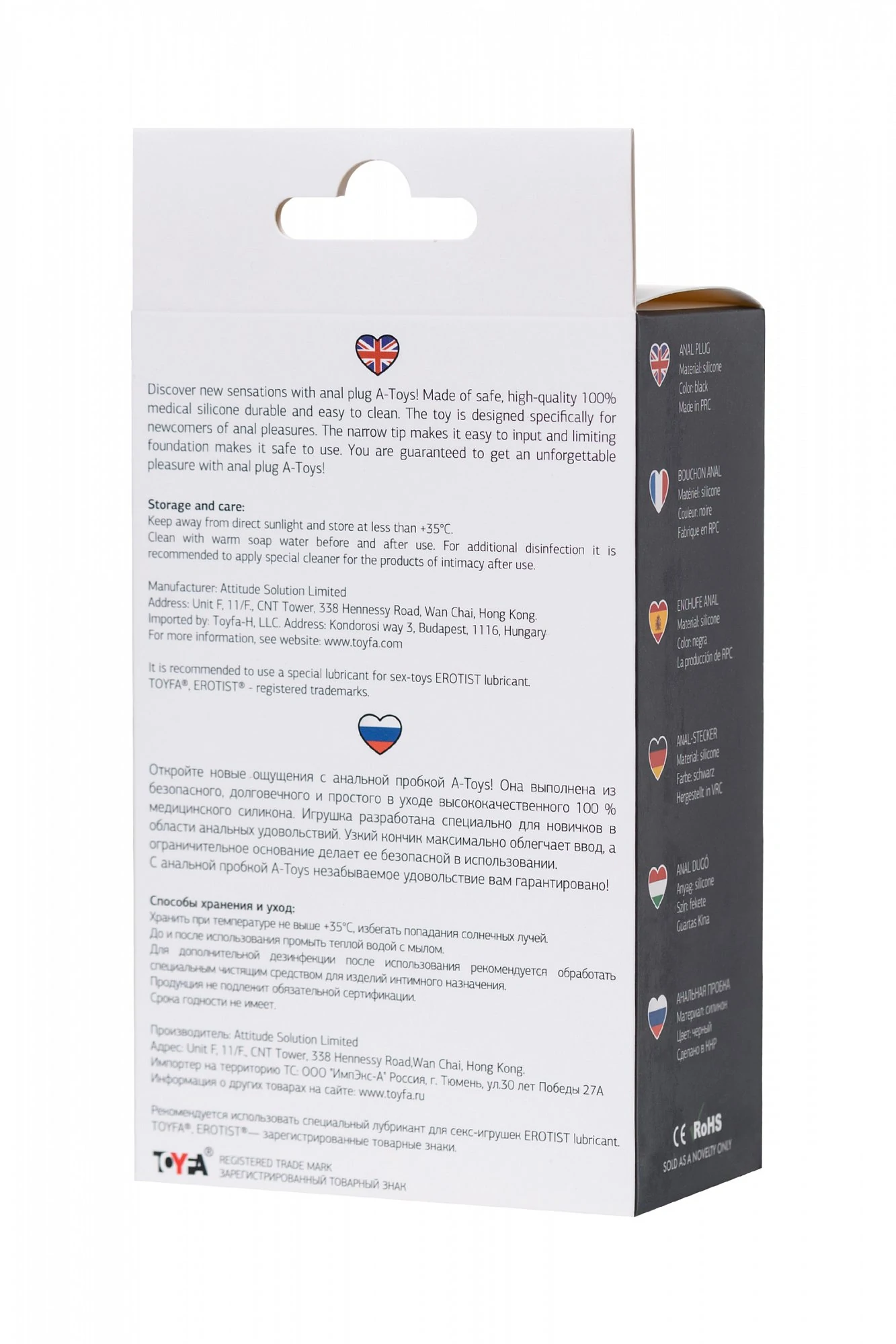 Откройте новые ощущения с анальной пробкой A-Toys! Она выполнена из безопасного, долговечного и простого в уходе высококачественного 100 % медицинского силикона. Игрушка разработана специально для новичков в области анальных удовольствий. Узкий кончик максимально облегчает ввод, а ограничительное основание делает ее безопасной в использовании. С анальной пробкой A-Toys незабываемое удовольствие вам гарантировано! Размер: общая длина 11,5 см,