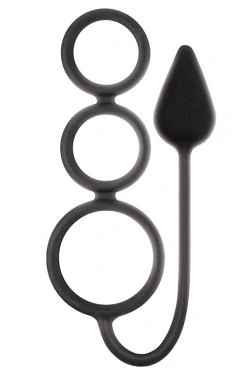 Анальная пробка Renegade - 3 Ring Circus - Small - Black малого размера с тремя эрекционными кольцами - двойное сексуальное удовольствие. Эрекционные кольца нежно сжимают половой член, тем самым удерживая и продлевая эрекцию. Анальная пробка надёжно фиксируется и воздействует на нервные окончания, даря незабываемый, выстреливающий оргазм. Соединены между собой связующей нитью с петелькой. Диаметр 2,79 см, длина 33,78 см. Цвет: Черный.