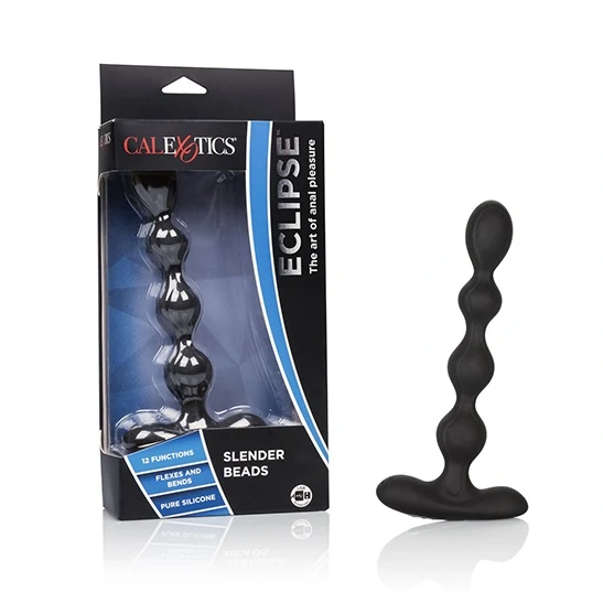 Eclipse Slender Beads - перезарежаемый гибкий силиконовый стимулятор в виде цепочки из четырех бусинок. Он изготовлен из гладкого литого гигиеничного силикона высшего качества, обеспечивающего удивительно приятные и гарантировано безопасные тактильные ощущения. Ультра мощный мотор обеспечивает 12 функций вибрации. Стимулятор имеет изогнутое основание, что не только не дает ему провалиться внутрь, но и позволяет носить ее внутри тела и использовать во время полового акта. Цепочка снабжена высокотехнологичным чипом памяти, который позволяет запомнить последний режим выбранной вибрации и включается именно с него, не требуя снова искать предпочитаемуф функцию. Гибкая конструкция позволяет стимулятору при ношении подстраиваться под анатомию тела, доставляя незабываемую яркую стимуляцию. Размер: общая длина 17,8 см, рабочая длина 16 см, диаметр 2,5 см. Цвет: черный. Для более комфортного использования рекомендуем приобрести смазку на водной основе и очищающий спрей Clear Toy 100 мл для обработки изделия.