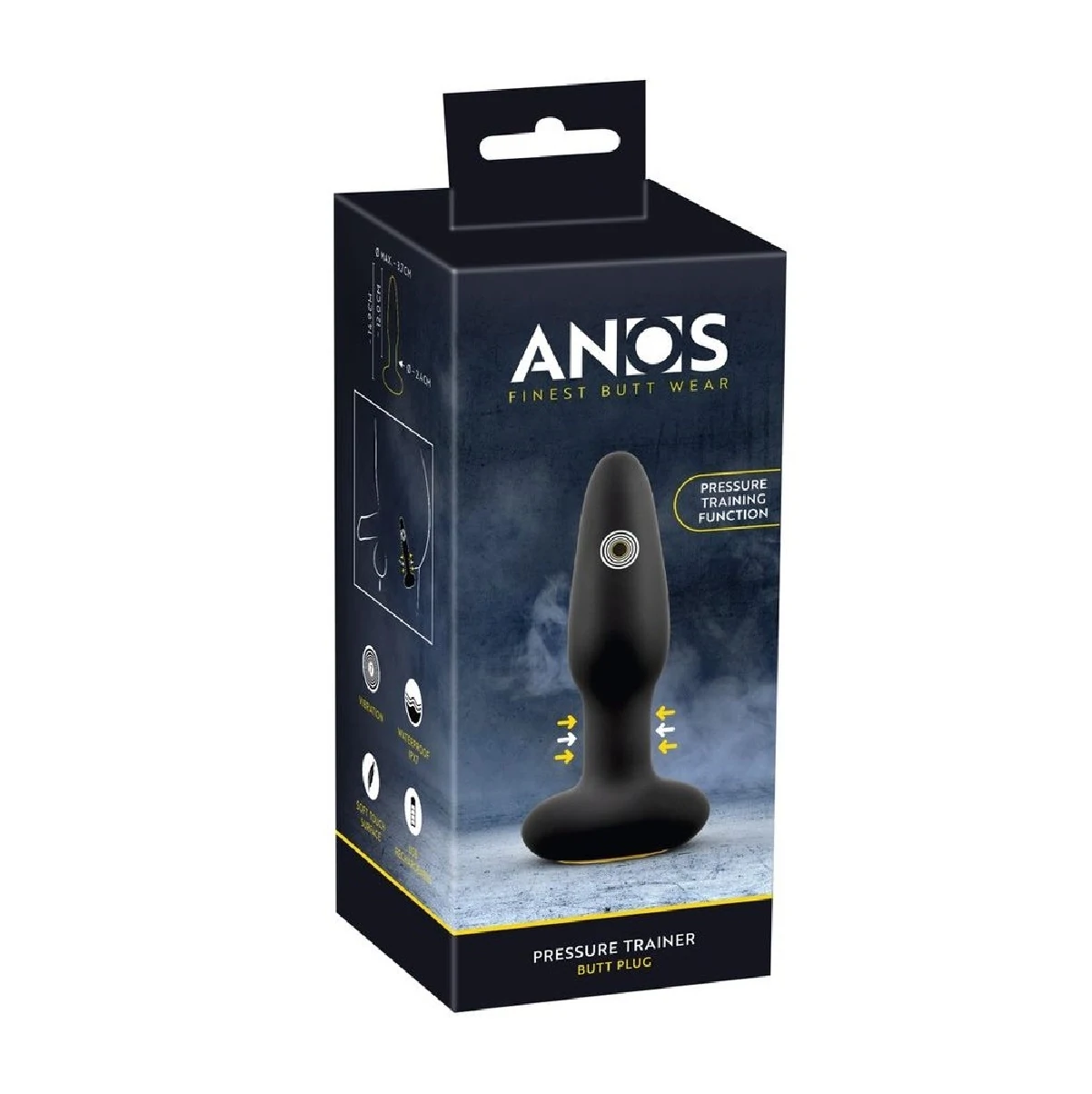 Вибро-анальная пробка конической формы Pressure Trainer от ANOS с чувствительным наконечником. Его 7 режимов вибрации удобно управляются нажатием кнопки прямо на пробке. А интенсивность режимов ловко регулируется давлением анальных мышц на датчик пробки, расположенный в конусе - чем сильнее давление, тем интенсивнее вибрация. Выполненная из силикона и покрытая бархатисто-шелковистой текстурой soft touch, пробка легко вставляется, скользит как бы сама по себе и идеально адаптируется к анатомии. Основание обеспечивает безопасное ношение его в течение длительного времени без каких-либо проблем. Размер: общая длина 14,9 см, рабочая длина 12 см, диаметр 3,7 см. Для более комфортного использования рекомендуем приобрести смазку на водной основе и очищающий спрей Clear Toy 100 мл для обработки изделия.