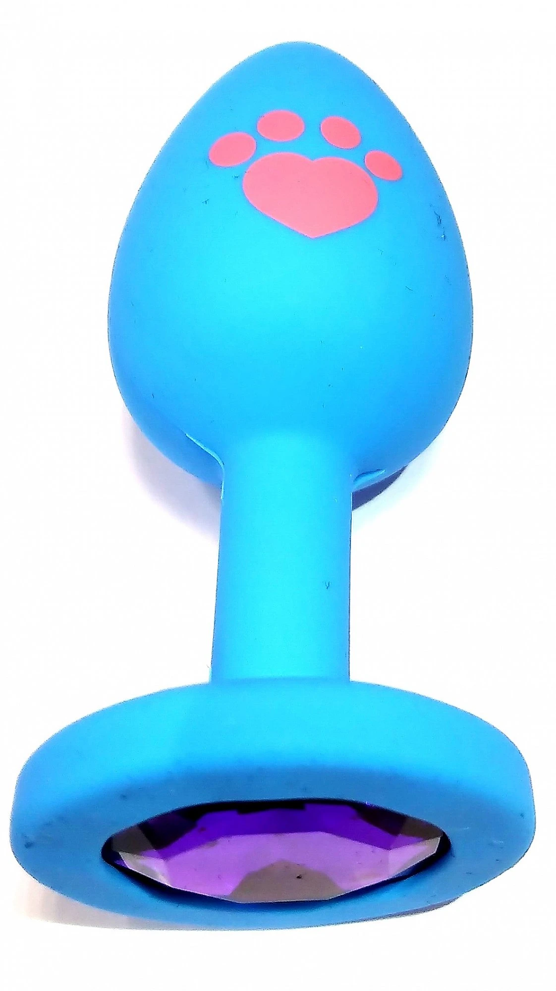 Силиконовая анальная втулка позволит по-новому взглянуть на сексуальное удовольствие! Интимный аксессуар выполнен в классической конусной форме, которая гарантирует деликатное и комфортное введение. Для контроля глубины проникновения втулка снабжена удобным ограничителем. Анальная пробка выполнена в ярком голубом цвете с рисунком лапки, изготовлена из гипоаллергенного материала - силикона и украшена фиолетовым кристаллом. Размер: длина 7 см, диаметр 2,8 см. Для более комфортного использования рекомендуем приобрести смазку на водной основе и очищающий спрей Clear Toy 100 мл для обработки изделия.