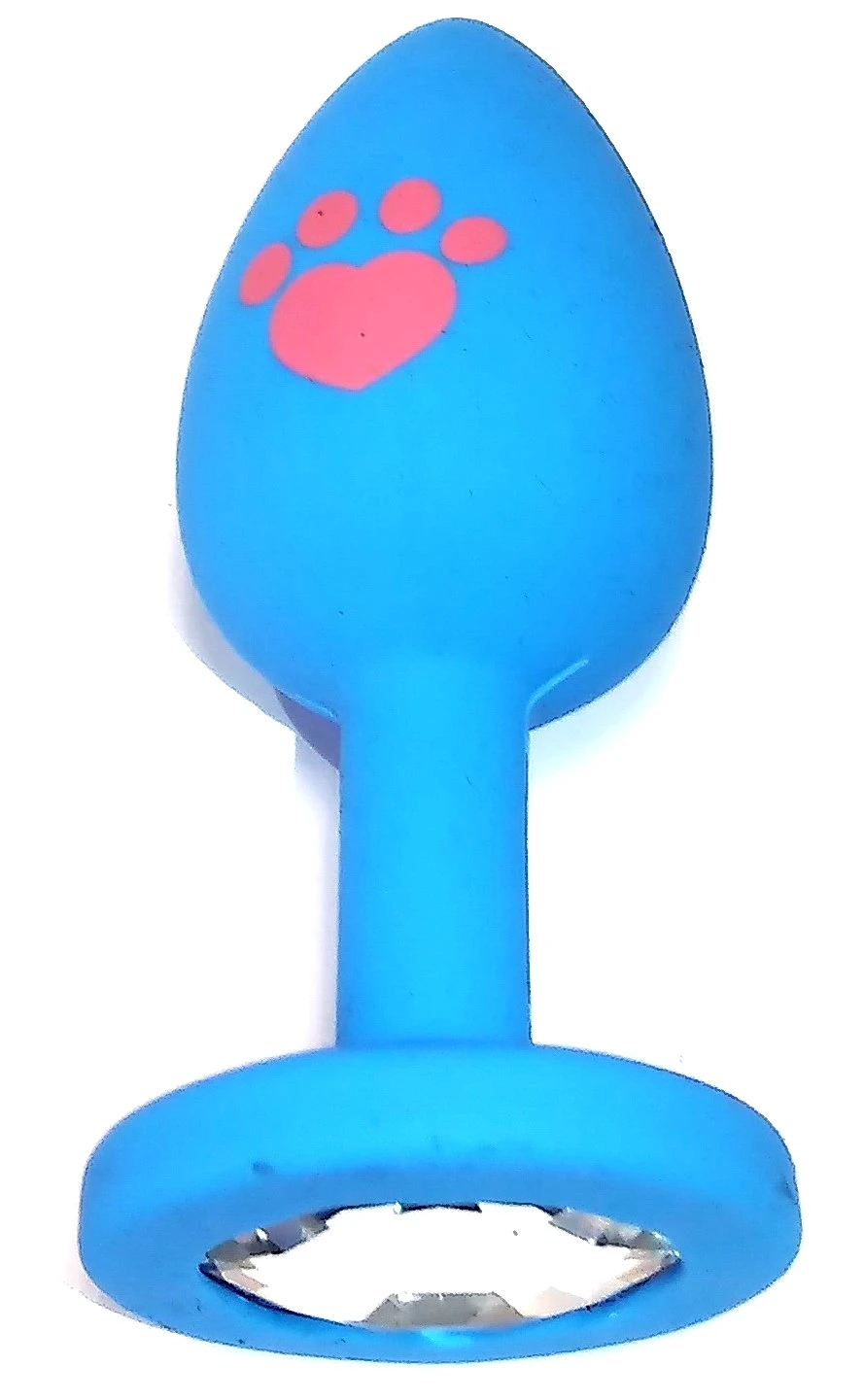 Силиконовая анальная втулка позволит по-новому взглянуть на сексуальное удовольствие! Интимный аксессуар выполнен в классической конусной форме, которая гарантирует деликатное и комфортное введение. Для контроля глубины проникновения втулка снабжена удобным ограничителем. Анальная пробка выполнена в ярком голубом цвете с рисунком лапки, изготовлена из гипоаллергенного материала - силикона и украшена прозрачным кристаллом. Размер: длина 7 см, диаметр 2,8 см. Для более комфортного использования рекомендуем приобрести смазку на водной основе и очищающий спрей Clear Toy 100 мл для обработки изделия.