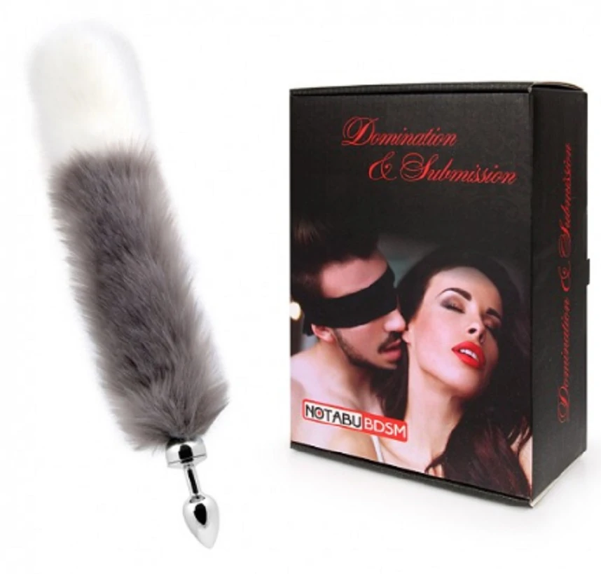 Анальная втулка на магните Notabu BDSM с серо-белым хвостом S NTU-80638