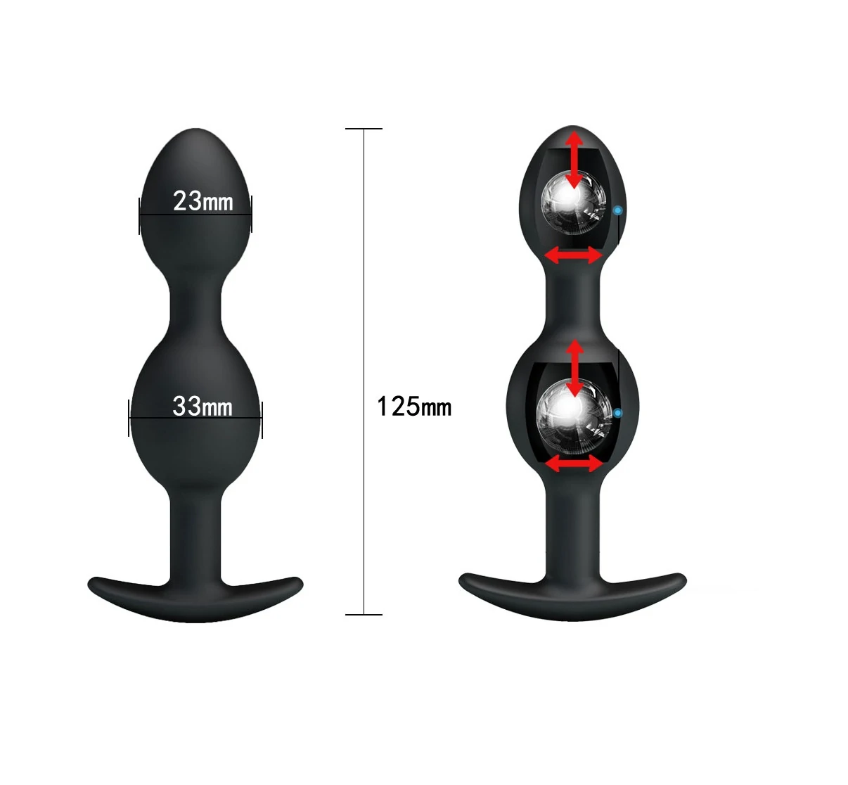 Эта анальная втулка с двумя шариками - единственный анальный стимулятор, который реагирует на каждое ваше движение и движения вашего партнера во время полового акта. После введения игрушка полностью неподвижна, как обычная анальная пробка, но уникальная и удивительная особенность заключается в том, что оба шарика имеют смещенный центр тяжести, который всегда будет в движении, когда вы активны, это создает приятные внутренние волны и массажные ощущения. Размер: общая длина 12 см, рабочая длина 11,5 см, диаметр шариков 2,3 и 3,3 см. Цвет: черный. Для более комфортного использования рекомендуем приобрести смазку на водной основе и очищающий спрей Clear Toy 100 мл для обработки изделия.