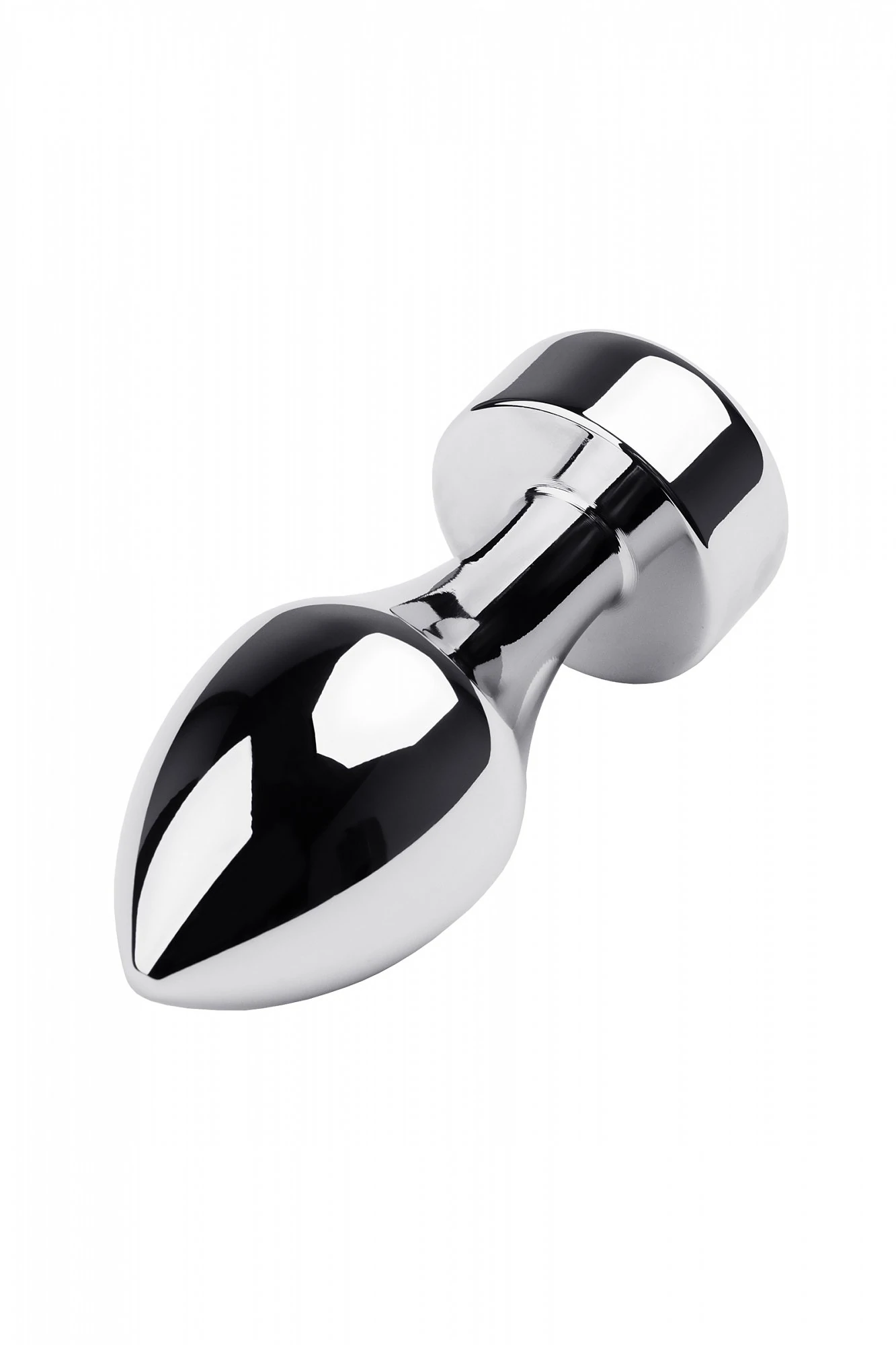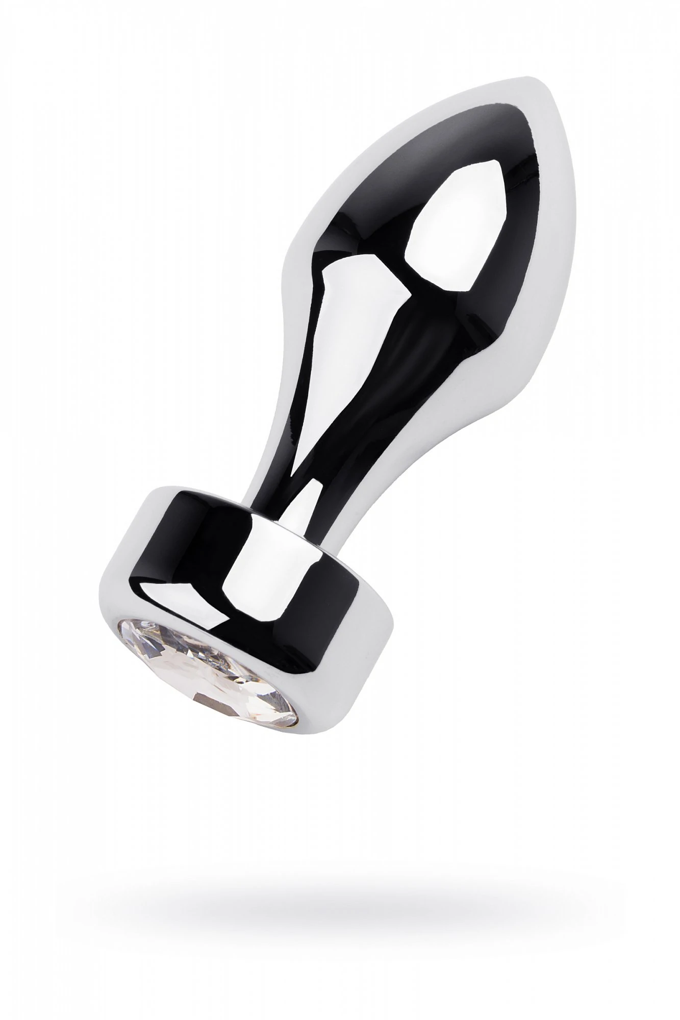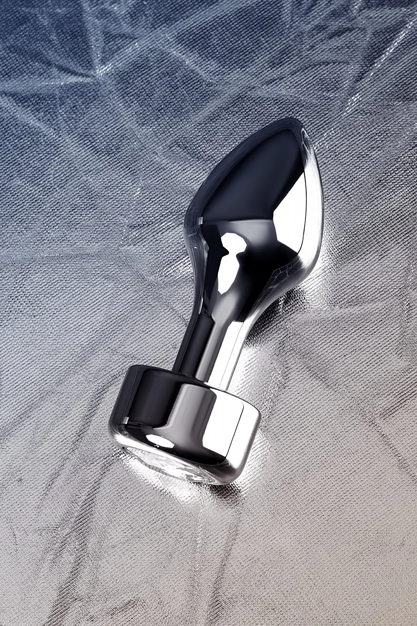 Серебристая втулка-пуля со стразом цвета алмаз подойдет опытным пользователям. Удобно вводится и удерживается внутри. Широкий ограничитель добавляет уверенности в том, что она не войдет слишком глубоко. Вес: 195 гр.