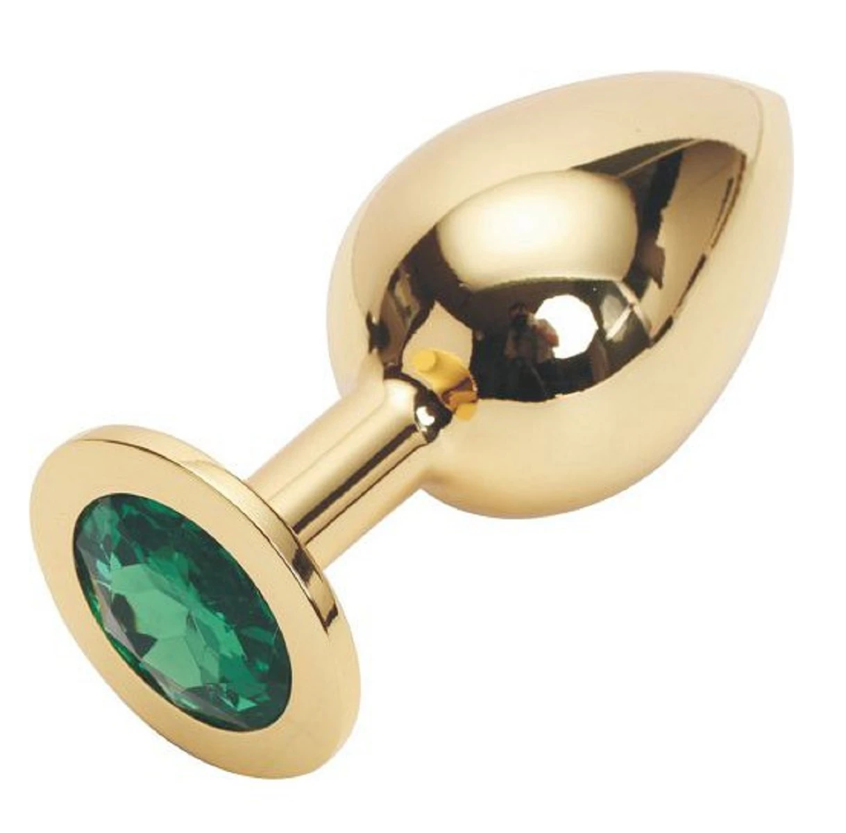 Стильная, гладкая, сверкающая, большая, глубоко проникающая, наполняющая – именно такими эпитетами можно охарактеризовать эту анальную втулку. Она выполнена из стали с позолотой и украшена большим изумрудным кристаллом на основании. Втулка является как секс-игрушкой, способной доставить немало удовольствия, так и роскошным интимным украшением. Изготовлена из нержавеющей стали, без запаха и является 100% гиппоаллергенной. Не вызывает раздражение и индивидуальную непереносимость материала. Размер: длина 9 см, диаметр 4 см. Цвет: золото, цвет кристалла: изумрудный. Для более комфортного использования рекомендуем смазку на водной основе и очищающий спрей Clear Toy 100 мл.