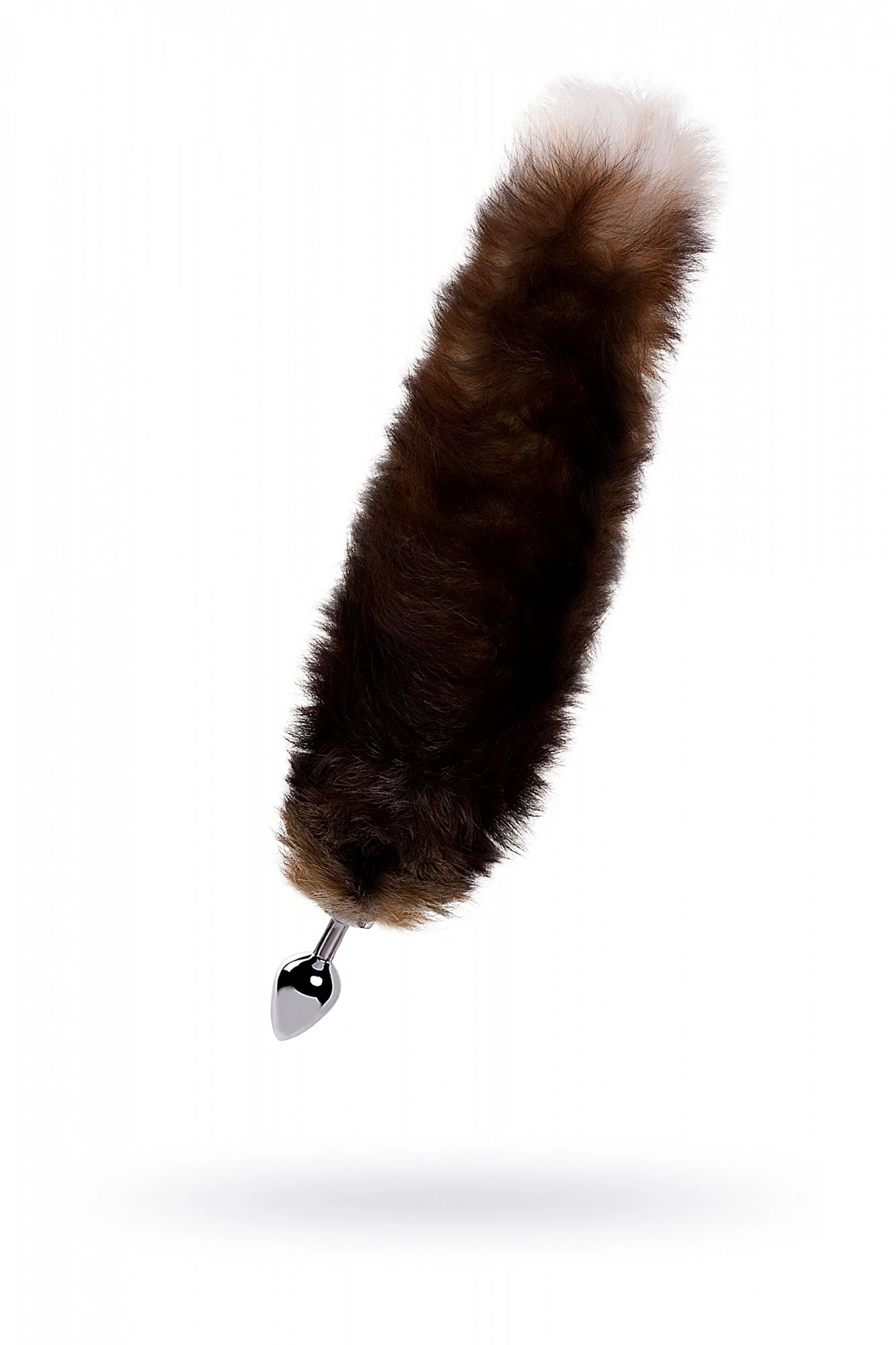 Анальная метеллическая втулка с рыжим лисьим хвостом. Размер: общая длина 34 см, длина втулки 6,5 см, диаметр втулки 0,9 см- 3,4 см