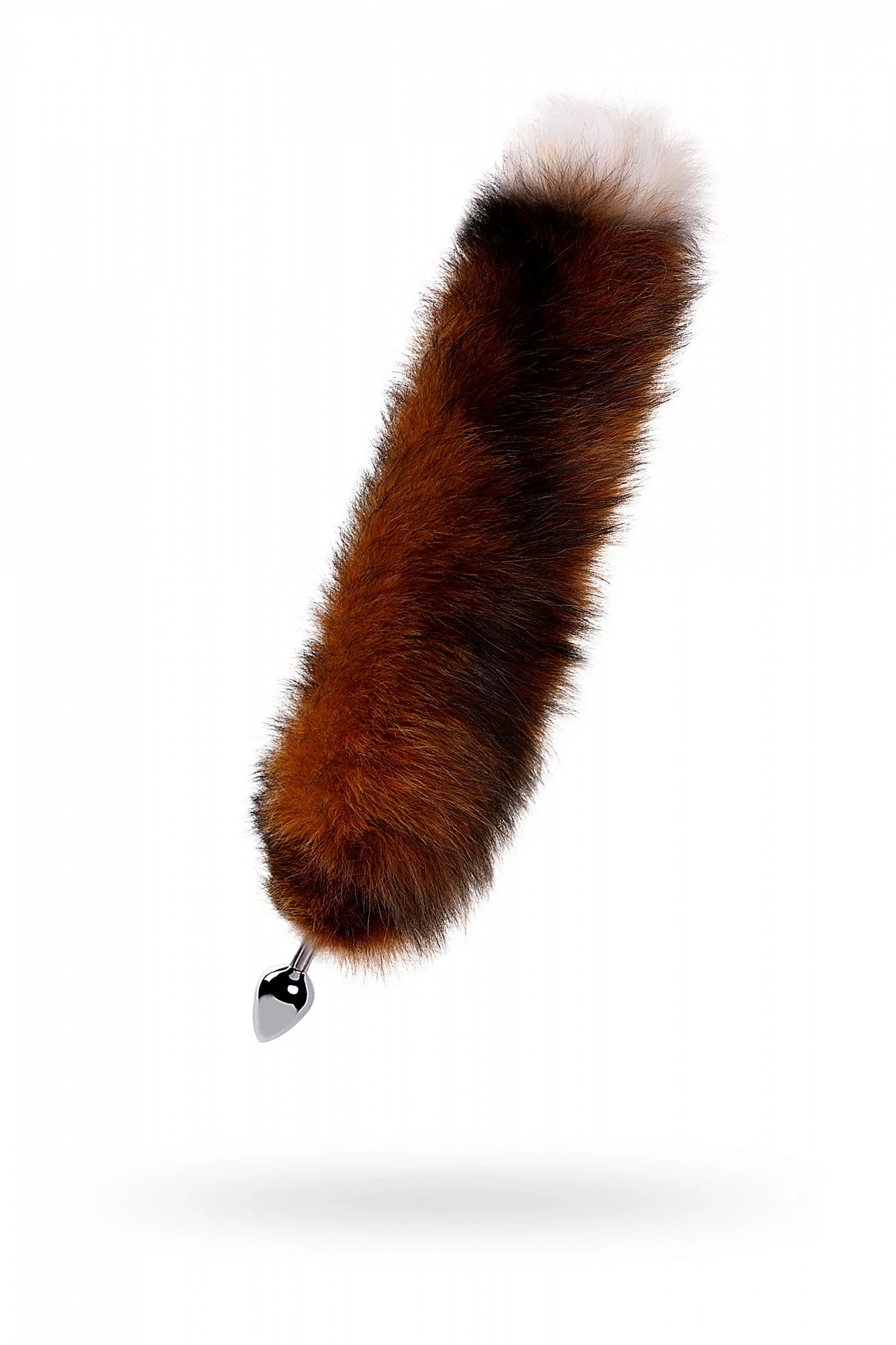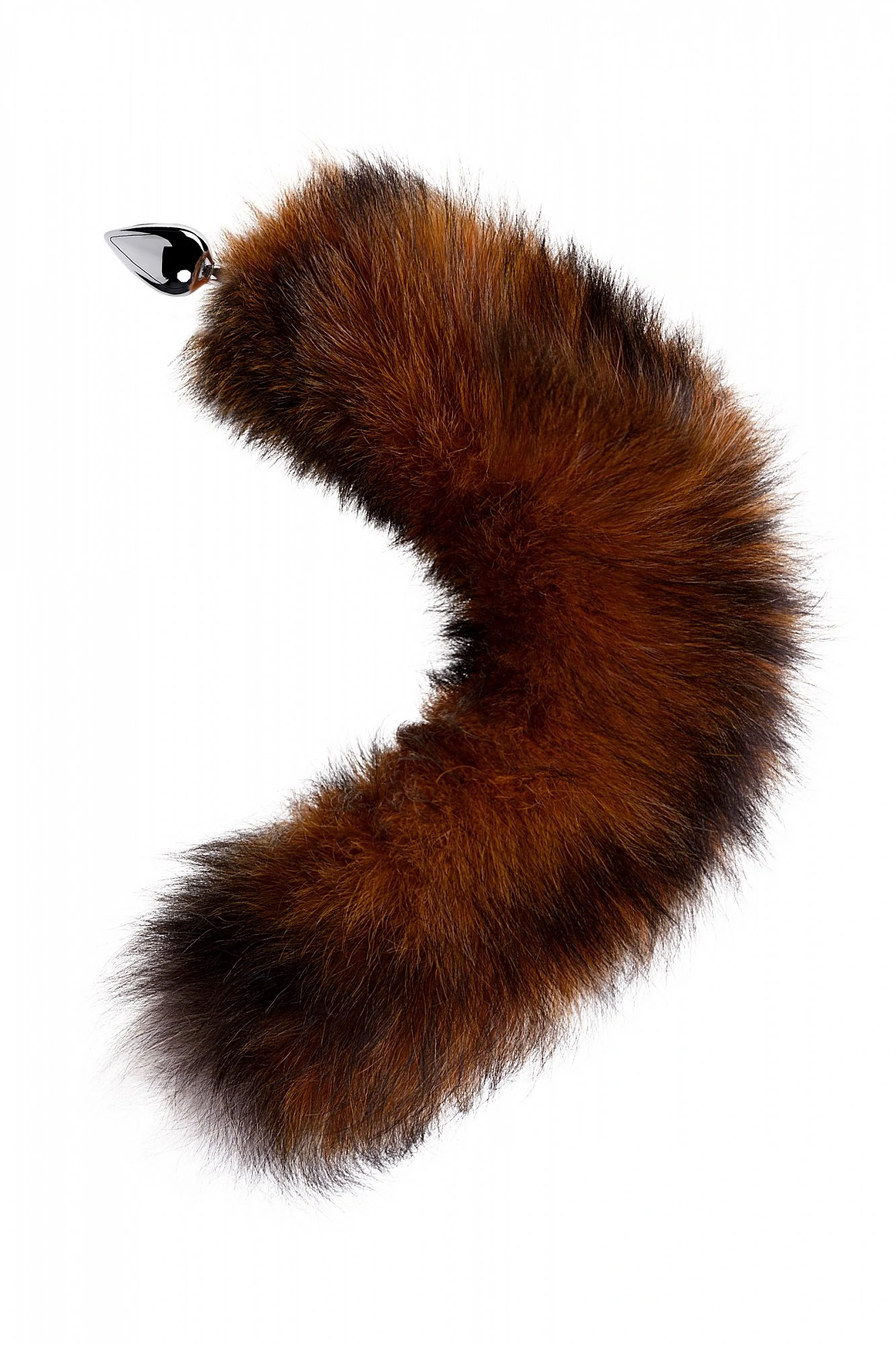 Анальная метеллическая втулка с тонированным лисьим хвостом. Размер: общая длина 34 см, длина втулки 6,5 см, диаметр втулки 0,9 см- 3,4 см.