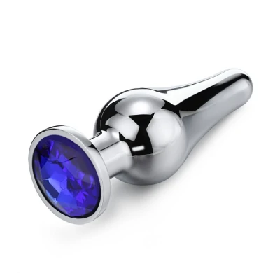 Серебристая анальная втулка с кристаллом синего цвета. Игрушку можно нагревать или охлаждать для придания играм более красочных ощущений. Основание пробки украшает великолепный страз синего цвета. Размер: длина 9,5 см, диаметр 3,3 см. Для более комфортного использования рекомендуем приобрести смазку на водной или силиконовой основе и очищающий спрей Clear Toy 100 мл для обработки изделия.