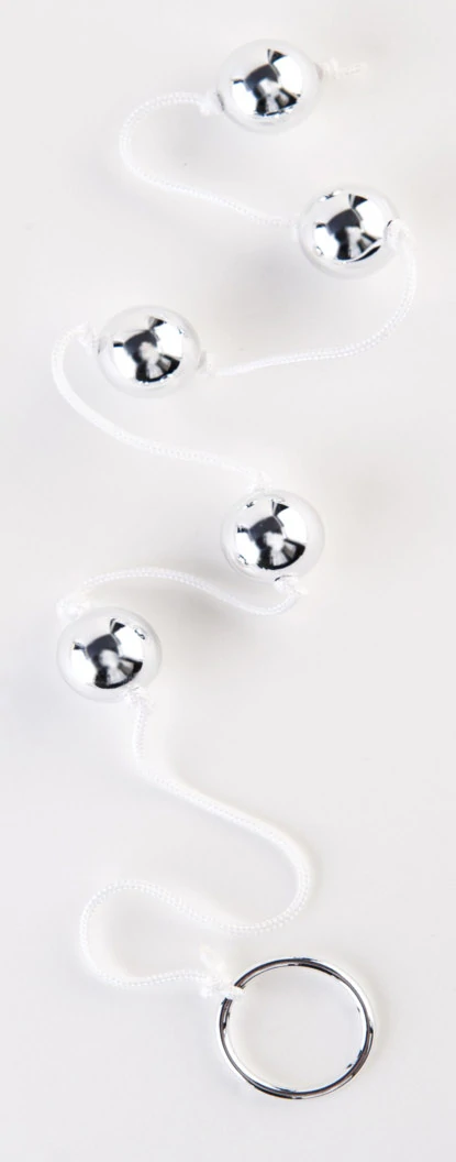 Анальные шарики, соединенные между собой простой белой веревкой. На веревке 5 шариков и колечко на конце. Шарики изготовлены из пластика. Эта анальная игрушка подойдет людям начинающим пробовать анальное удовольствие! Диаметр 1 см. Цвет: серебристый. Для более комфортного использования рекомендуем приобрести смазку на водной основе и очищающий спрей Clear Toy 100 мл для обработки изделия.