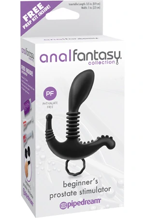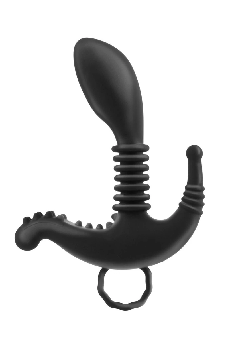 Продуманная изогнутая форма позволяет безошибочно оказывать стимуляцию в нужных местах. Основная стимуляция (стимуляция простаты) происходит за счет овального наконечника. Наконечник слегка заострен, чтобы облегчить введение. Текстурированные выступы на втором по величине отростке оказывают внешнее давление на промежность, тем самым стимулируя находящиеся в этой области эрогенные зоны. Использование стимулятора простаты во время полового контакта способствует более жесткой эрекции и сильнейшему оргазму. Кольцо на основании стимулятора обеспечивает простое и безопасное извлечение. Длина вставной части 7,5 см. Гипоаллергенен. Материал не содержит фталатов. В комплект включены: два напальчника, дезинфецирующий крем, любрикант, очиститель для игрушек.