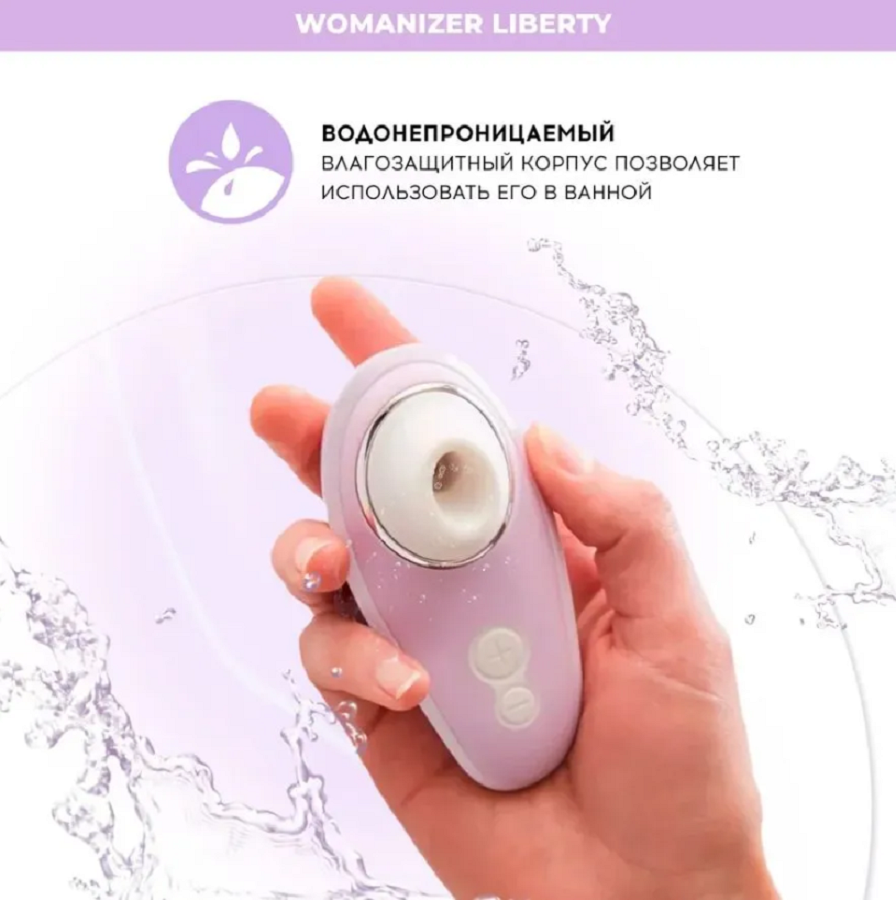 Корпус Womanizer Liberty создан из безопасного прочного пластика, покрытого гипоаллергенным медицинским силиконом, мягким и приятным на ощупь. Womanizer Liberty на 100% водонепроницаем и подходит для использования в душе или ванной. У Womanizer Liberty есть магнитный контактный USB-порт для зарядки. Длина 10,4 см. Цвет сиреневый. Для более комфортного использования рекомендуем приобрести смазку на водной основе и очищающий спрей Clear Toy 100 мл для обработки изделия.