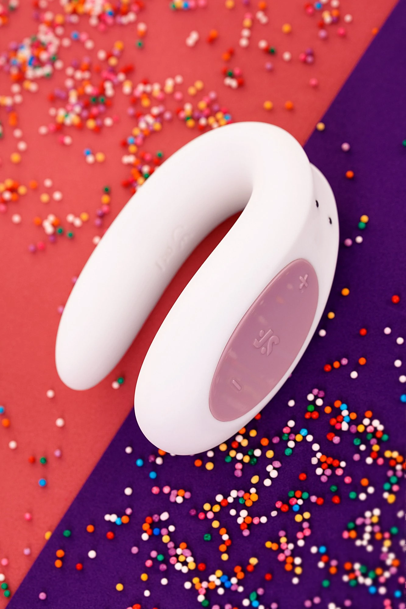 Благодаря эргономичному дизайну Satisfyer Double Joy имеет U-образную форму, плотно прилегающую к интимным зонам и обеспечивающую интенсивную вибрацию. Он имеет два мотора, один из которых предназначен для стимуляции влагалища, второй для стимуляции клитора. Особенность игрушки состоит в том, что она управляется не только с помощью кнопок на корпусе, но и с помощью телефона. Новое приложение Satisfyer Connect предлагает вам уникальные возможности. Оно совместимо с любым Android или Apple, смартфоном, планшетом и Apple Watch.Приложение Satisfyer Connect не собирает никаких данных об использовании игрушки или поведении пользователей. Дистанционное управление позволит наслаждаться не только стандартными программами, но и эксклюзивными функциями по созданию своих режимов вибрации. Дополнительно в приложении есть опция, при использовании микрофона мобильного телефона можно делать преобразование окружающих звуков в вибрацию. Игрушка также вибрирует под музыку. В приложении доступна функция видео чат.