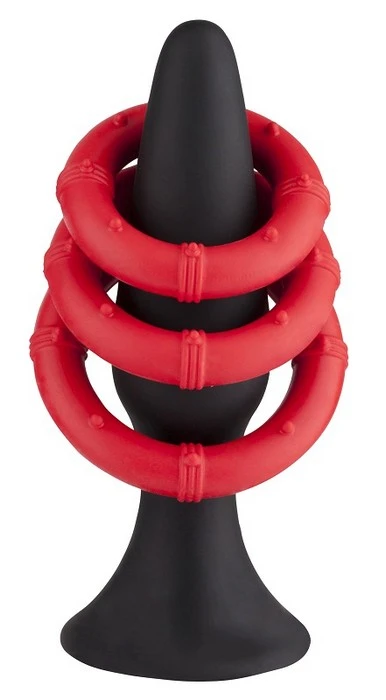 Набор, в состав которого входит анальная втулка черного цвета (длина - 13 см, диаметр - 2,5 см.) и три эрекционных кольца красного цвета разных размеров (2 см, 3.7 см, 4.2 см). Материал: силикон.