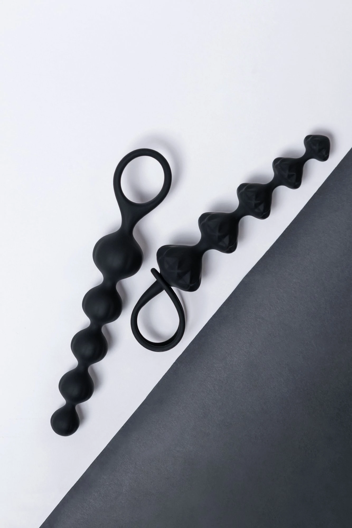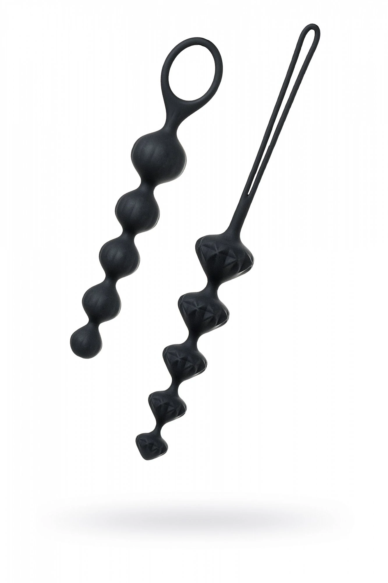 Набор анальных цепочек чарующего черного цвета из гипоаллергенного силикона. В комплекте два ожерелья с гладким и рельефным узором звеньев - для опытных и начинающих любителей анальных стимуляций. Одинаково подходят для женщин и мужчин, желающих испытать новые ощущения и эмоции. Цепочки Satisfyer Beads имеют увеличивающийся диаметр звеньев, которые приятно массируют сфинктер и помогают подготовиться к анальному сексу. Для безопасного наслаждения на конце ожерелий есть удерживающие кольца. Они помогут комфортно ввести и извлечь секс-игрушку. Общая длина 20,5 см, рабочая длина 14,5 см. Цвет: черный. Для более комфортного использования рекомендуем приобрести смазку на водной основе и очищающий спрей Clear Toy 100 мл для обработки изделия.
