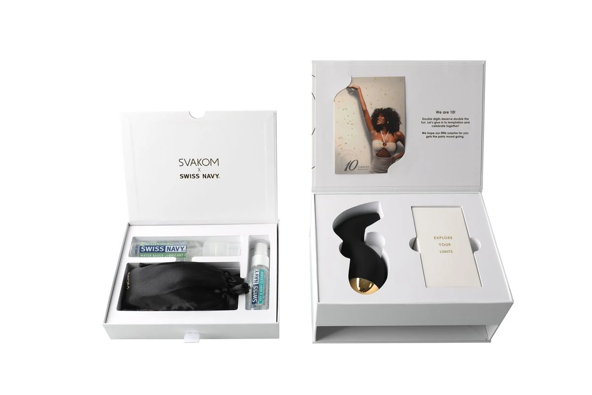 Pulse Pure предлагает 5 уникальных режимов пульсирующего всасывания с 5 уровнями интенсивности в каждом — 25 невероятных комбинаций на любой вкус. Эргономичный дизайн Pulse Pure позволяет стимулятору удобно и надежно лежать в руке. Вытянутый носик с раструбом идеально подходит под любую физиологию. Размер: длина 12,9 см, диаметр 5,9 см. Цвет черный. В состав набора входит: Pulse Pure, маска на глаза для сенсорной депривации, атласная повязка для фиксации, лубрикант Swiss Navy All Natural гипоаллергенный 2oz / 59 мл, очищающий спрей для игрушек - Swiss Navy Toy & Body Cleaner 1oz /30 мл.