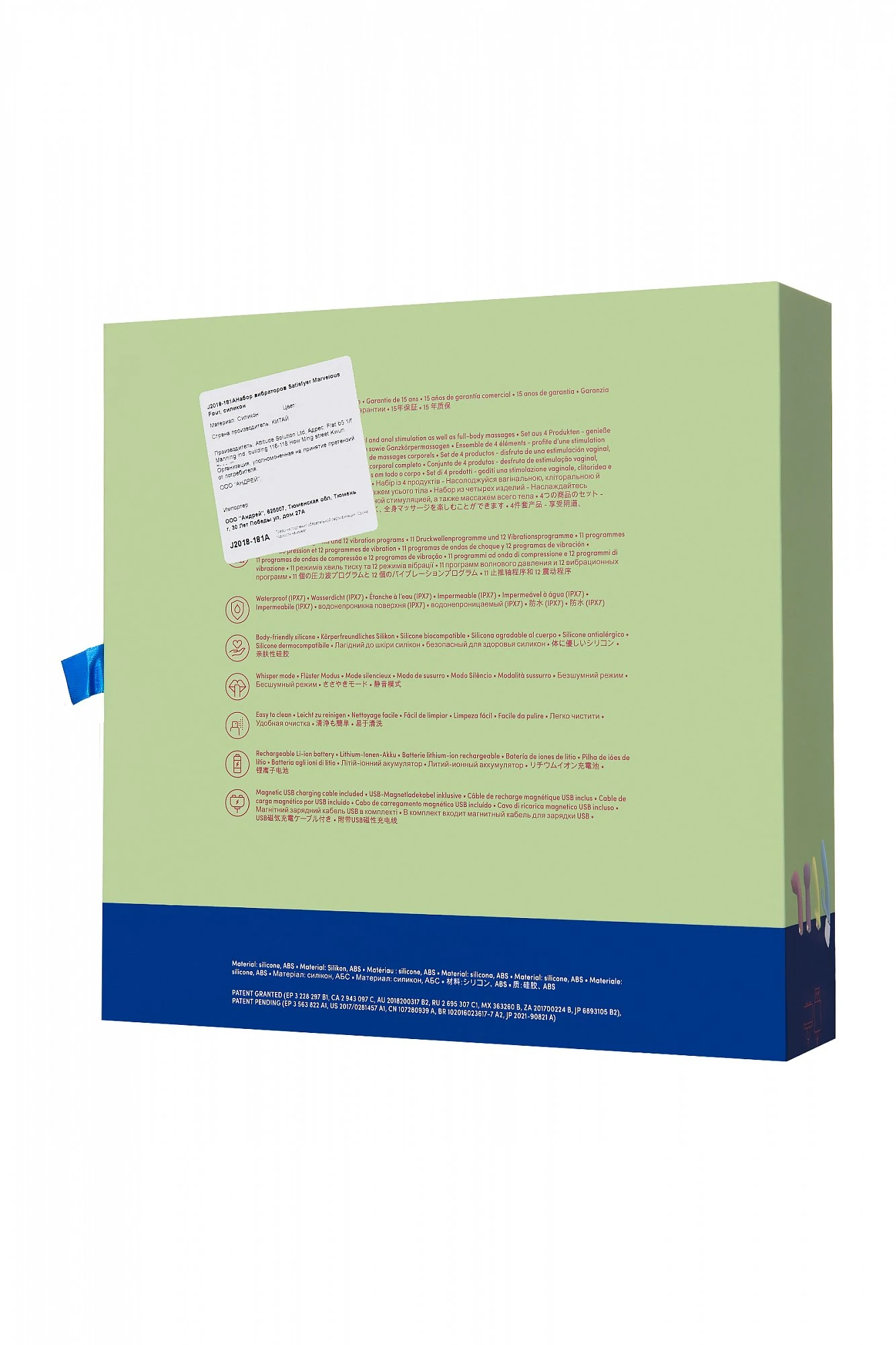 Великолепная четверка Marvelous Four от знаменитого бренда Satisfyer станет персональным проводником в мир удовольствия и наслаждения. С этим набором легко познавать возможности своего тела и партнера. Аккумулятор находится в основании, на котором фиксируются сменные насадки, каждая насадка имеет мощный мотор и 12 режимов вибрации. Вибратор-кролик с погружной длиной 12,5 см и диаметром 3,5 см с двумя моторами позволит ощутить всю прелесть стимуляции зоны G и клитора. Классический вибратор с рабочей длиной 11 см и массажер-ванд длиной 13 см обладают такой же глубокой проникающей вибрацией, способной расслаблять мышцы тела и снимать напряжение. Вакуум-волновой стимулятор имеет расширенный раструб, что позволяет стимулировать не только клиторальную зону, но и область сосков и головки полового члена. Marvelous Four предлагает попробовать вместе с партнером всевозможные виды стимуляции: клиторальную, вагинальную и анальную, а также массаж тела и эрогенных зон.