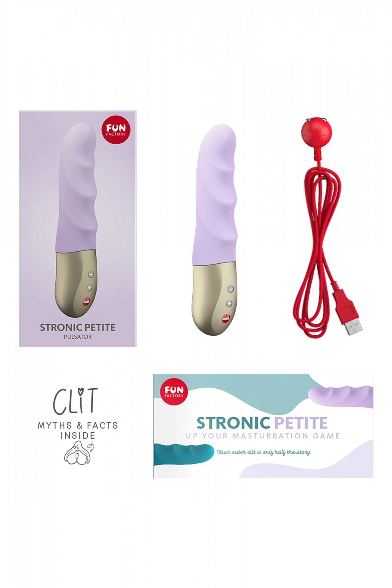 Мини-пульсатор лиловый новое слово в женском оргазме, независимо от возраста и темперамента – пульсатор Stronic Petite от немецкого производителя Fun Factory. Размер мини для концентрированного удовольствия и максимального наслаждения. Тот самый случай, когда размер не имеет значения – в изящном пульсаторе Stronic Petite спрятаны мощный мотор и механизм поступательно-возвратных действий. Самый легкий и небольшой пульсатор, при этом мощный и впечатляющий. В отличие от простых вибраторов Stronic Petite имитирует фрикции, совершаемые партнером, оказывая пульсирующее давление на все самые чувствительные зоны. Ваша незаменимая игрушка-антистресс, которая будет доставлять вам удовольствие без помощи ваших рук – стоит ввести во влагалище и зажать между ног, или устроить его на подушке. А руки смело пускайте в ход для самых вкусных ласк.