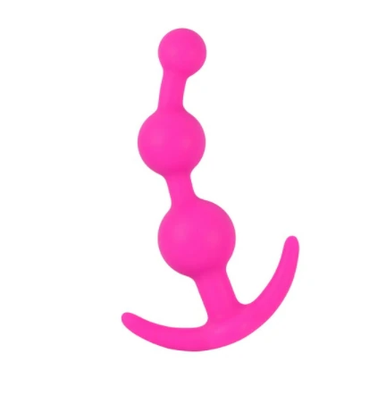 Стимулятор анальный для ношения. Гибкая и очень податливая игрушка доставит удовольствие как новичкам, так и более опытным партнерам. Три шарика разного диаметра на гибкой сцепке с гладкой поверхностью подарят вам незабываемые ощущения от анального проникновения. Изогнутая форма игрушки идеально подойдет для проведения массажа простаты, а также прямого воздействия на женскую точку G. Основание игрушки выполнено в виде двухсторонней ручки для удобного извлечения ее из ануса. Размер: общая длина 13 см, рабочая длина 12,5 см, диаметр шариков от 2 до 3 см. Цвет: розовый. Для более комфортного использования рекомендуем приобрести смазку на водной основе и очищающий спрей Clear Toy 100 мл для обработки изделия.