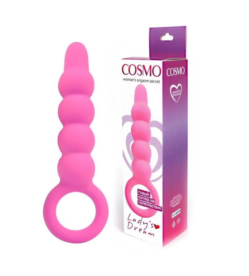 Великолепный стимулятор из коллекции «COSMO» наполнит вашу интимную жизнь незабываемыми эмоциями. Интимный аксессуар представляет собой классическую анальную «елочку» с ручкой-кольцом для контроля глубины проникновения и удобного извлечения. «Секс-игрушка» обладает эргономичной формой, приятной на ощупь поверхностью. Изделие изготовлено из высококачественного гипоаллергенного силикона, выполнено в красивом розовом цвете. Для более комфортного использования рекомендуем приобрести смазку на водной основе и очищающий спрей Clear Toy 100мл для обработки изделия. Размер: общая длина 19 см, рабочая длина 14 см, диаметр 3,4 см.