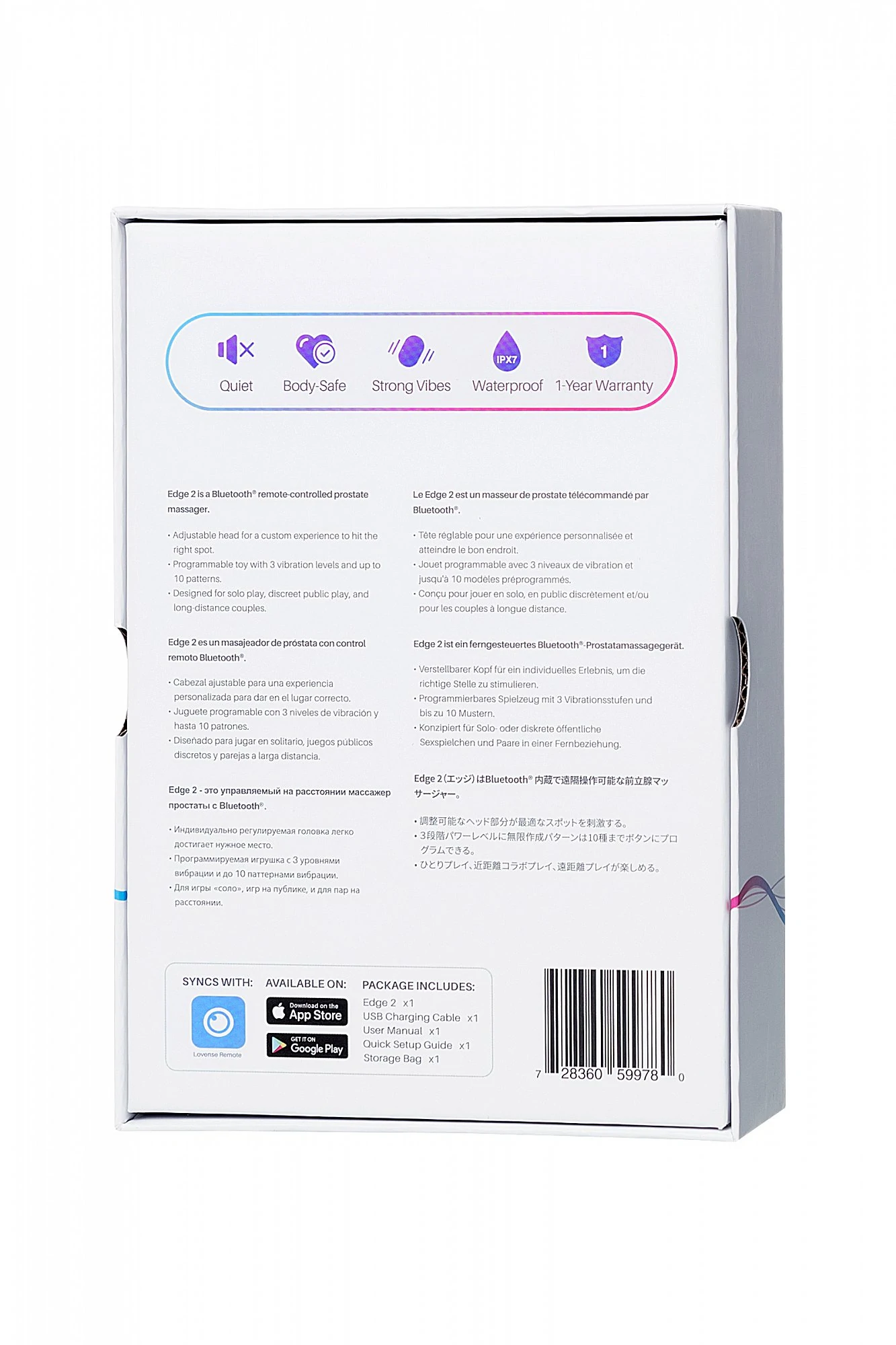 Edge 2 - это второе поколение регулируемого массажера простаты с мощной стимуляцией точки P и промежности от бренда LOVENSE. В Edge 2 есть несколько изменений, которые делают его еще более привлекательным, чем раньше. Магнитный зарядный порт делает процесс зарядки удобнее. Оптимизированная компоновка и конструкция антенны обеспечивают более стабильное соединение. Чтобы усилить преимущества регулируемой и вставной части, мы обновили дизайн Edge 2, разместив шарик большего размера над шейкой игрушки для обеспечения большей стабильности и еще более сильной стимуляции точки Р. Усовершенствованная батарея позволит пользователям наслаждаться длительными вибрациями самого мощного уровня. Вы не захотите упустить возможность попробовать это! Размер: общая длина 12.4 см, рабочая длина 9,1 см, диаметр 3,2 см.