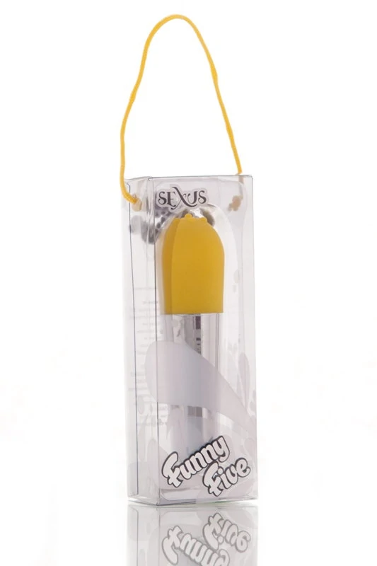 Вибратор желтого цвета. Размер: длина 10 см, диаметр 1,5 см - 2,5 см.