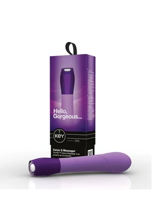 Вибромассажер G-точки CERES G SPOT - водонепроницаемый вибратор с 7 интенсивными режимами вибрации, бесшумный, с дизайнерской ручкой «под стекло» и загнутым концом для стимуляции точки G, поверхность из высококачественного мягкого, гладкого, приятного на ощупь и гипоаллергенного силикона. В комплекте чехол, не оставляющий ворсинок, оснащён удобной кнопкой из нержавеющей стали. Работает от 2 батареек типа АА. Длина: 14 см, диаметр: 3,75 см, цвет: фиолетовый. Материал: силикон, ABS.
