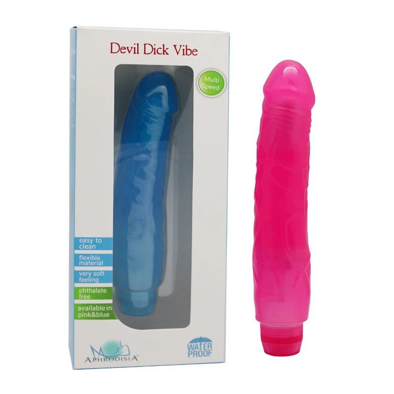 Классический вибратор для вагинальной стимуляции. Оборудован мощной мульти-вибрацией и выполнен из очень приятного на ощупь материала, с удивительно "скользкой" поверхностью. Для дополнительных ощущений, имеет текстурированную поверхность и внушительного размера головку. Способен гнуться подстраиваясь под вашу фантазию. Вибратор Aphrodisia "Devil Dick Vibe" выполнен из термопластичного эластомера, безопасного материала, который не содержит фталатов, быстро принимает температуру тела и прост в уходе. Элементы питания в комплект не входят, закажите пожалуйста отдельно. Размер: длина 17,5 см, диаметр 3,3 см. Для более комфортного использования рекомендуем приобрести смазку на водной основе и очищащий спрей Clear Toy 100 мл.