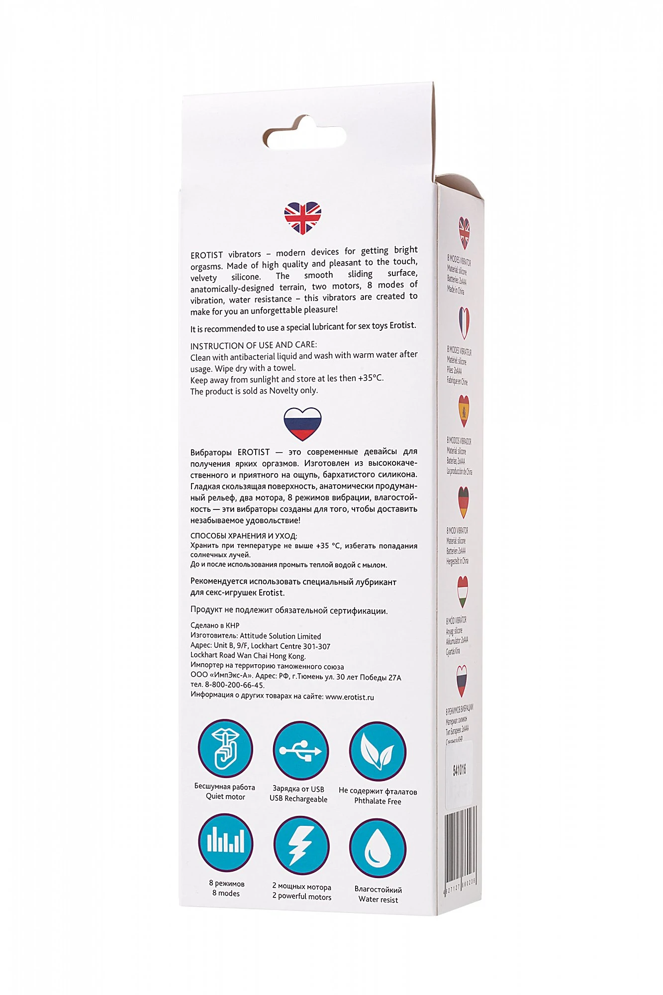 Вибратор Era — это современные девайсы для получения ярких оргазмов. Изготовлен из высококачественного и приятного на ощупь, бархатистого силикона. Гладкая скользящая поверхность, анатомически продуманный рельеф, два мотора, 8 режимов вибрации, влагостойкость — эти вибраторы созданы для того, чтобы доставить незабываемое удовольствие! Размер: общая длина 18 см, рабочая длина 13 см, диаметр 3 см. Для более комфортного использования рекомендуем приобрести смазку на водной основе и очищающий спрей Clear Toy 100 мл для обработки изделия.