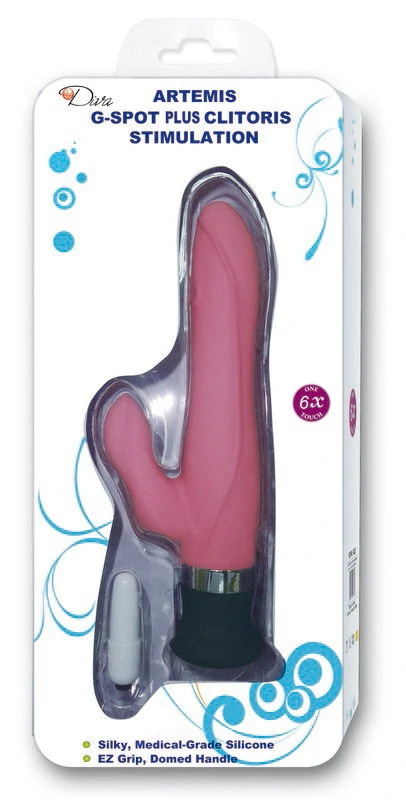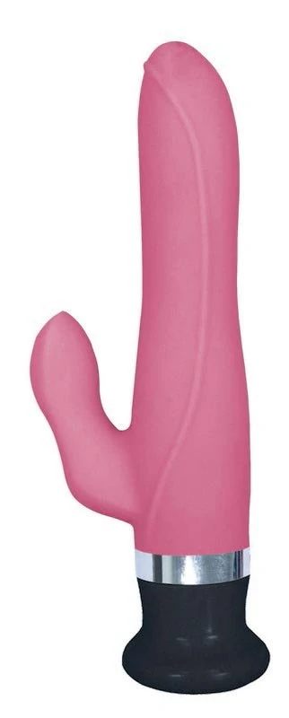 Вибратор с клиторальным стимулятором, имеет 6 режимов вибрации, два моторчика. Материал: силикон. Размер: длина 17,5 см, диаметр 3 см. Цвет: розовый.