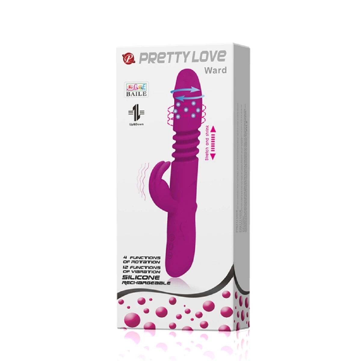 Вибромассажер выполнен из высококачественного медицинского силикона этот водонепроницаемый вибратор гладкий и очень нежный. Имеет 12 мощных режимов вибрации и пульсации, 4 режима толкательных (поступательных) движений. Функция ротации головки массажера. Бархатистый гибкий силикон повторяет все контуры внутри вашего тела. Силиконовый вибратор, снабженный клиторальным стимулятором в форме забавного кролика и имеет 5 вариаций вибрации. Размер: общая длина 27 см, рабочая длина 15 см, диаметр 4 см. Цвет фиолетовый. Для более комфортного использования рекомендуем приобрести смазку на водной основе и очищающий спрей Clear Toy 100 мл для обработки изделия.