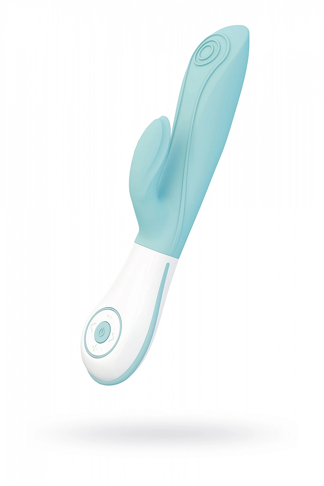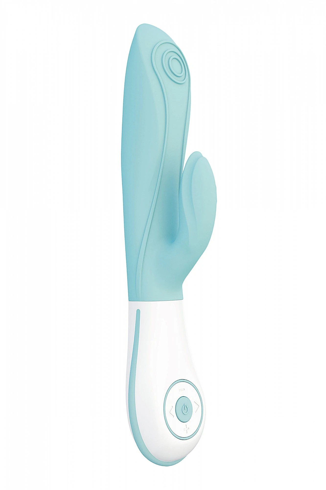 Вибратор с клиторальным стимулятором, голубого цвета.