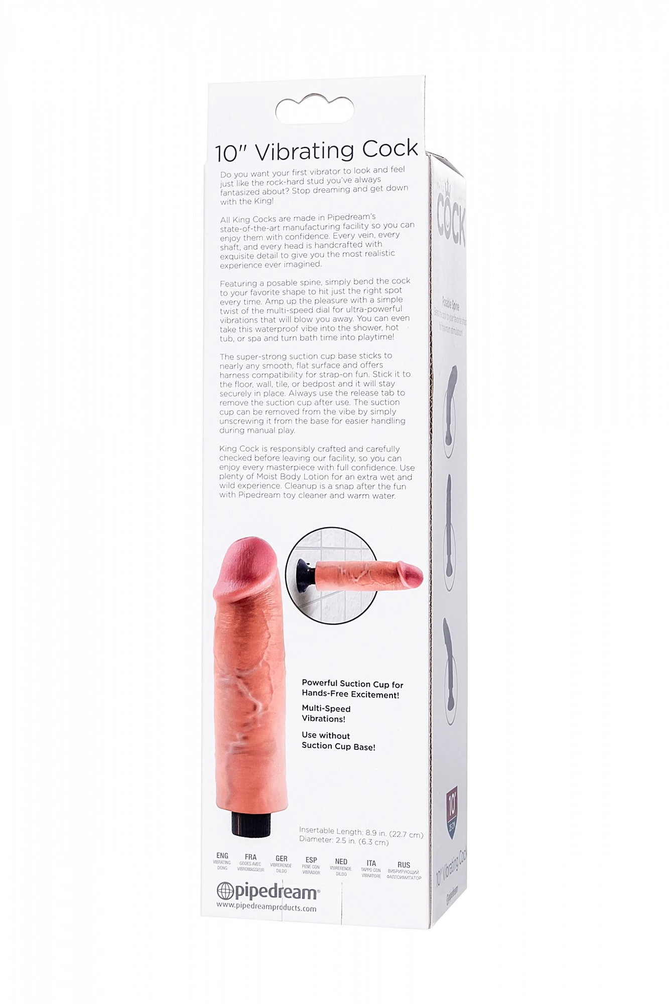 Реалистичный, полностью водонепроницаемый вибратор King Cock 10" Vibrating Cock универсального назначения от американского бренда Pipedream. Его можно использовать в качестве фаллопротеза для страпон-системы, а также в виде обычного вибростимулятора для внутреннего и внешнего возбуждения эрогенных зон. Ненасытный и умелый «гигант» создан для обладателей внушительных сексуальных аппетитов. Гибкий каркас позволяет девайсу принимать любой изгиб – фаллос примет тот угол, который подходит именно вам для максимального удовольствия. Каждая вена, морщинка, переход выполнены вручную, чтобы воссоздать максимально реалистичные ощущения во время использования. Многоскоростная вибрация может быть задействована как с присоской, так и без нее (вакуумная присосочная часть легко снимается и надевается назад). Вибрация регулируется вращающимся многоскоростным диском, просто поворачивайте ручку и наслаждайтесь проникающими волнами наслаждения. Мощная присоска позволяет крепить водонепроницаемый вибратор на любую ровную гл