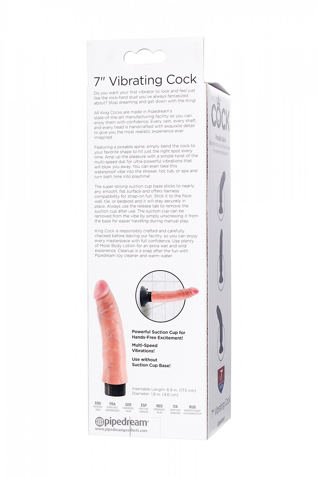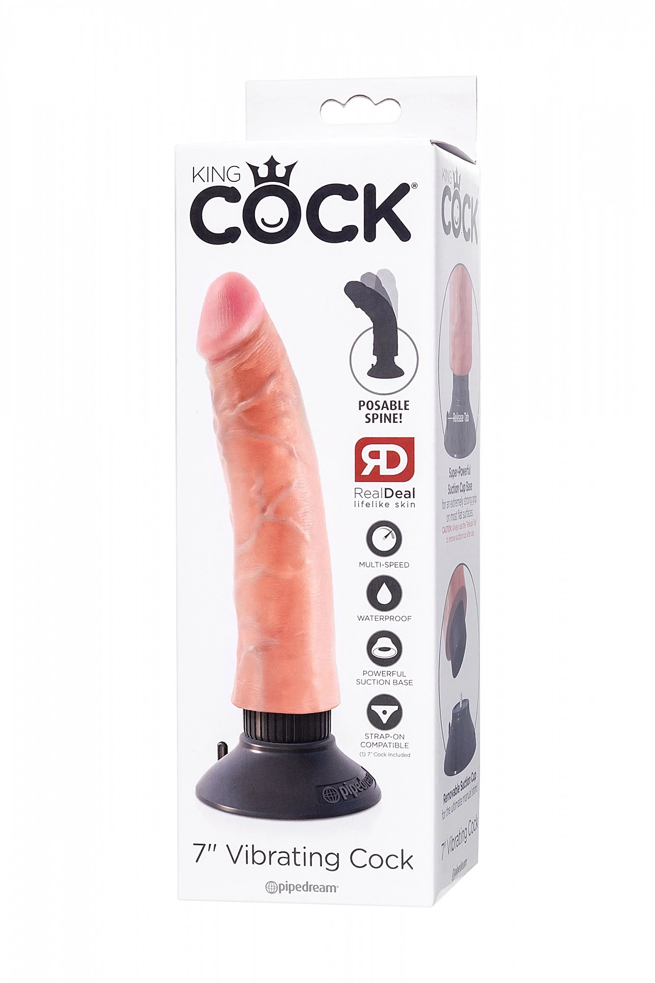 Невероятно возбуждающий вибратор средних размеров из серии King Cock от американского бренда Pipedream умеет все что нужно, чтобы доставить вам полный спектр эмоций от стимуляции. Подходит как новичкам, так и тем, кто в поисках аутентичных фаллосов-реалистиков. King Cock 7" Vibrating Cock отличается красивым цветом, характерным для человеческой кожи, а также детальной прорисовкой анатомических особенностей мужского пениса: выраженная головка, венки, ребристые переходы и морщинки. Гибкий внутренний «позвоночник» позволяет экспериментировать с позами – фаллос примет тот угол, который подходит именно вам для максимального удовольствия. Съемная литая присоска позволяет крепить водонепроницаемый вибратор на любую ровную гладкую поверхность, в том числе в ванной или джакузи. Да, это означает что получать удовольствие с вибратором King Cock 7" Vibrating Cock можно даже в воде. Также присоска пригодится в качестве крепления в специальные трусики, чтобы вибратор мог использоваться в качестве страпона. Визу