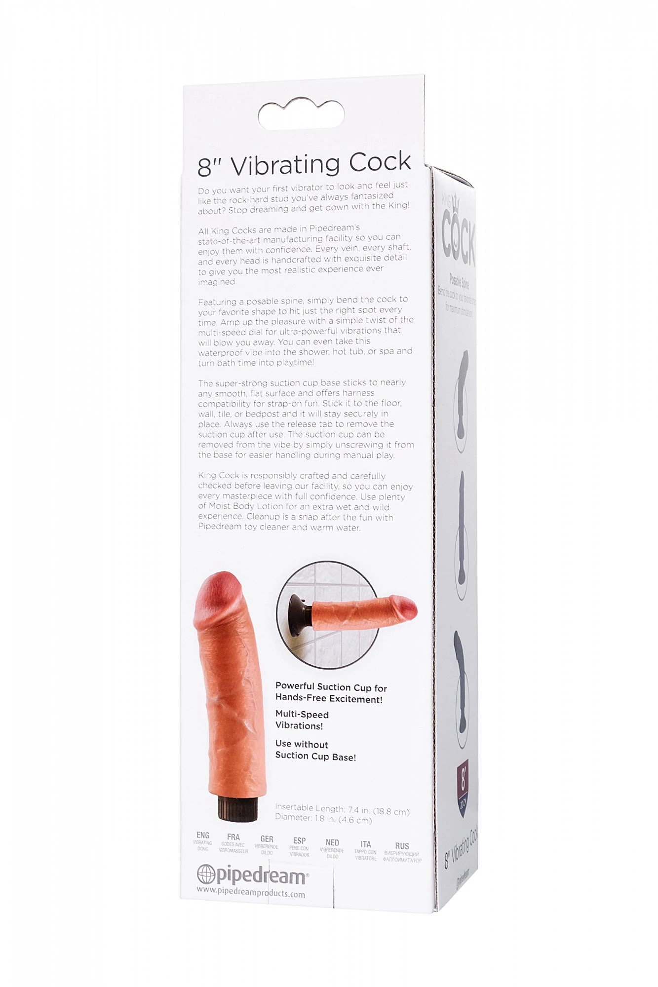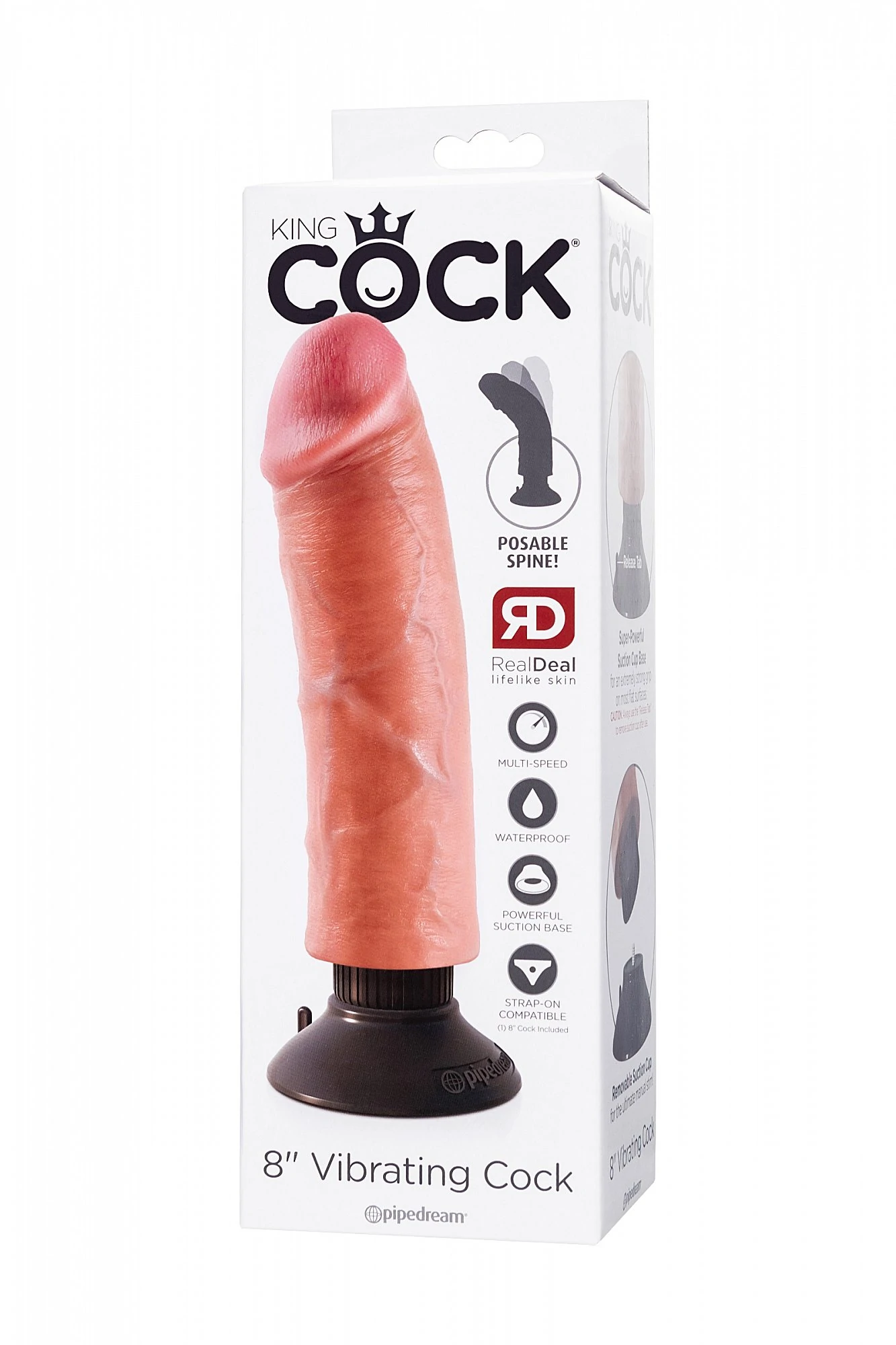 Уникальный вибратор King Cock 8" Vibrating Cock от американского бренда Pipedream выполнен с максимальной приближенностью к реалистичному мужскому пенису. В нем все, как у полноценного члена: размеры, четко прорисованный венозный рисунок, выраженная головка, крайняя плоть, ребристые переходы и морщинки. Вибрация регулируется вращающимся многоскоростным диском, просто поворачивайте ручку и наслаждайтесь проникающими волнами наслаждения. Изделие изготовлено таким образом, чтобы воссоздать максимально реалистичные ощущения. Гибкий каркас King Cock 8" Vibrating Cock – залог легкой смены формы и выбора любых поз – фаллос примет тот угол, который подходит именно вам для максимального удовольствия. Полностью водонепроницаемый вибратор можно использовать с прикрепленной внутрь вакуумной присоской или же без нее. Съемная литая присоска позволяет крепить водонепроницаемый вибратор на любую ровную гладкую поверхность, в том числе в ванной или джакузи. Да, это означает что получать удовольствие с вибратором Kin