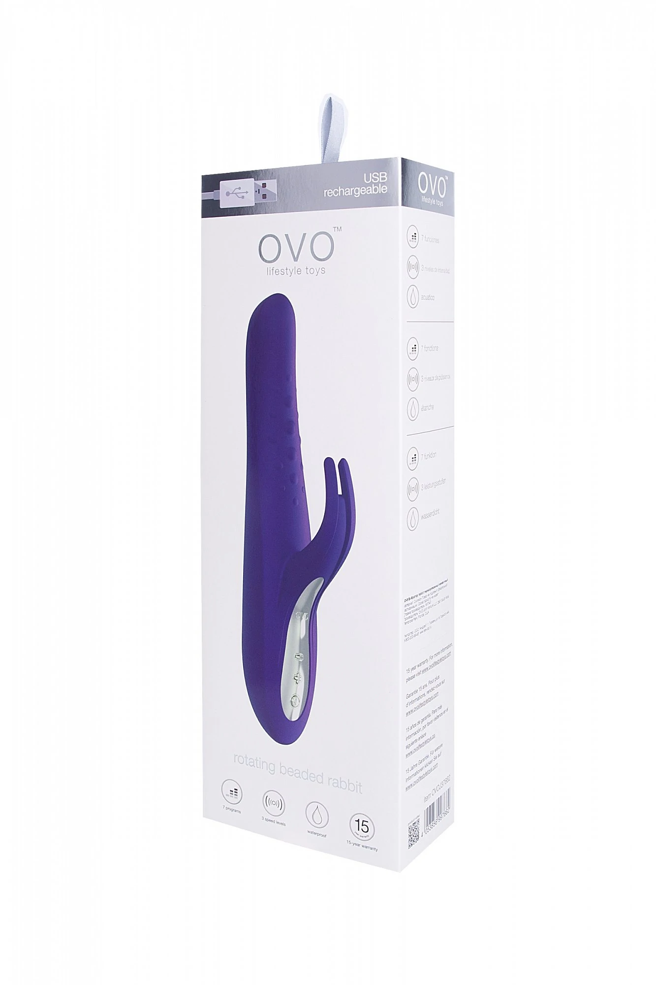 Новый революционный кролик-ротатор от OVO! Элегантный, вращающийся ствол с металлическими шариками идеален для самой чувственной стимуляции точки G. Гибкие ушки кролика обеспечивают интенсивный прямой массаж клитора. 7 программ, 3 уровня мощности и 3 скорости вращения. Сделано из безопасного силикона и ABS. Перезаряжаемый от USB. Полностью водонепроницаемый. Мультифункциональный. 2 мотора.