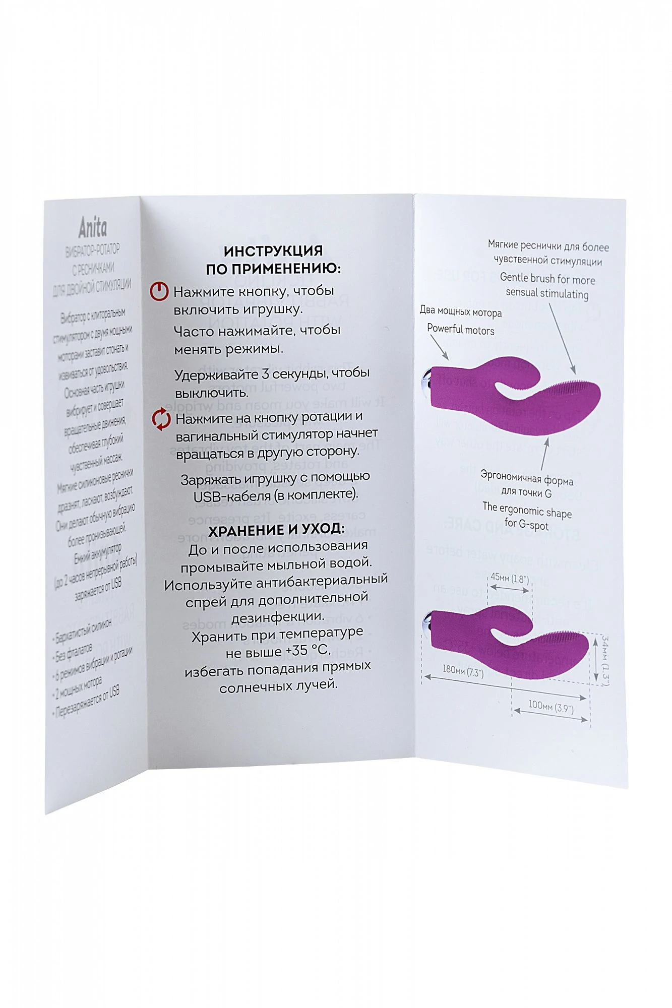 Вибратор с клиторальным стимулятором и двумя мощными моторами заставит стонать и извиваться от удовольствия. Основная часть игрушки совершает вращательные движения, обеспечивая глубокий чувственный массаж. Вибрация изделия сконцентрирована в основании и на клиторальном отростке. Мягкие силиконовые реснички дразнят, ласкают, возбуждают. Они делают обычную вибрацию более пронизывающей. Емкий аккумулятор (до 2 часов непрерывной работы) заряжается от USB. 6 режимов вибрации. Размер: общая длина 18 см, рабочая длина 10 см, диаметр 2,4- 3,4 см. Цвет фиолетовый. Для более комфортного использования рекомендуем приобрести смазку на водной основе и очищающий спрей Clear Toy 100 мл для обработки изделия.