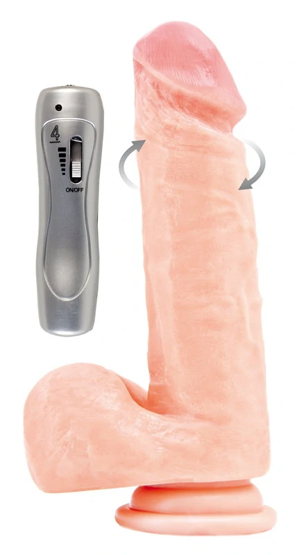 Вибратор с выносным пультом и ротатором. Материал: ПВХ. Размер: длина 19 см, диаметр 4 см. Цвет: телесный.