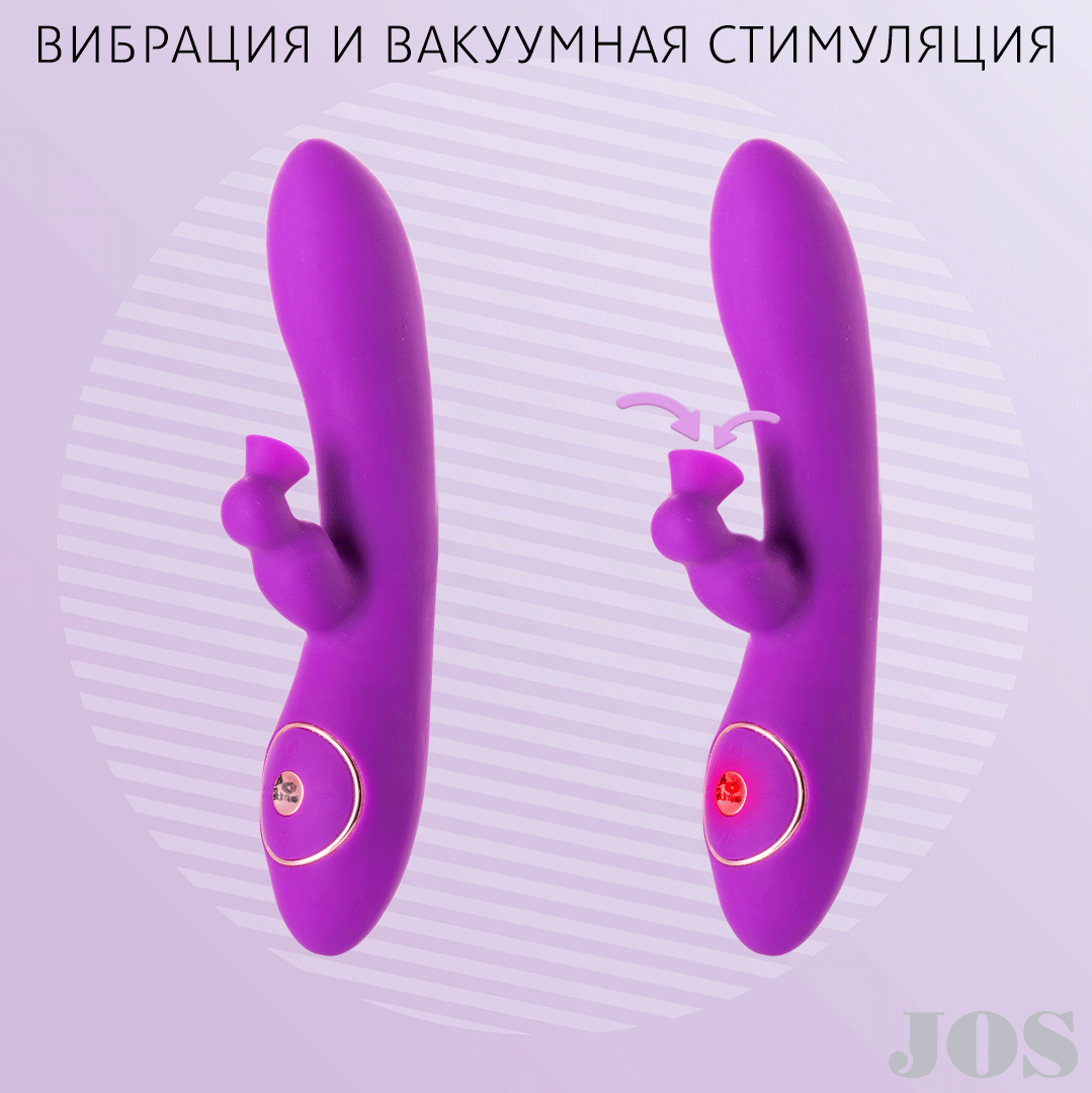 Хочешь получить удовольствие от проникновения и оральных ласк сразу? JUM осуществит твою фантазию! Клиторальный стимулятор вибрирует, а может нежно посасывать клитор, охватывая его полностью. Выбирай режим или чередуй их - выбор за тобой! Загнутая головка основного стимулятора обеспечивает направленную стимуляцию точки G. Вибратор имеет два мощных мотора с 6 режимами вибрации.Игрушка изготовлена из бархатистого силикона. JUM готов работать до 4 часов непрерывно. Не требует батареек и заряжается с помощью USB-провода (в комплекте). 6 режимов вибрации и вакуумной стимуляции. 3 степени интенсивности. 2 мощных мотора. Как использовать? Включить и выключить игрушку можно с помощью трехсекундного удержания кнопки вкл/выкл. Переключить клиторальный с вибрации на вакуумную стимуляцию и обратно можно с помощью трехсекундного удержания кнопки JOS. Интенсивность вибрации двух моторов регулируется кнопками -/+. Размер: общая длина 21 см, рабочая длина 11 см, диаметр 3,8 см. Рекомендуем смазку на водной основе.