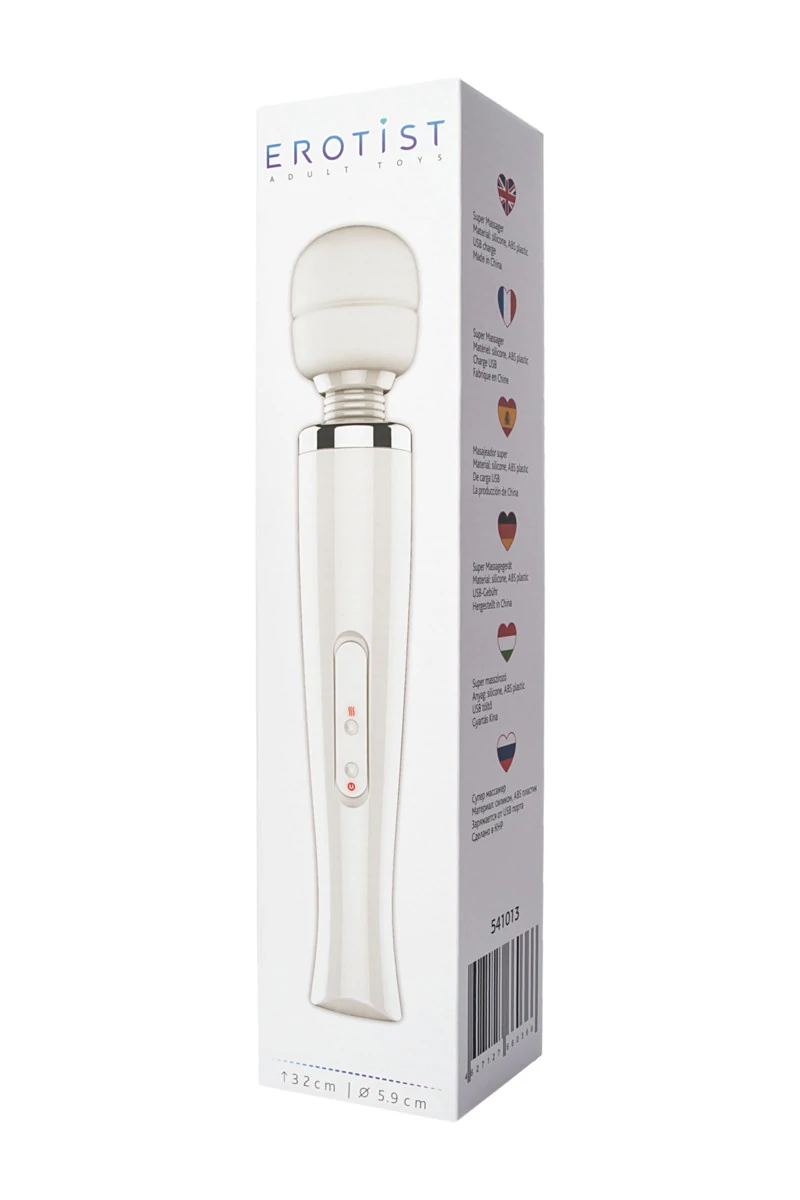 Мощный и очень удобный в эксплуатации вибратор Erotist Super Massager пользуется заслуженной популярностью. Этот мега массажер обеспечивает потрясающие ощущения благодаря 10 режимам мощных вибраций. Гладкая силиконовая головка гарантирует приятные тактильные ощущения, а гибкая «шея» массажера позволяет найти нужный угол и силу нажатия. Если когда-либо у вас была проблема с достижением кульминации, этот массажер - именно то, что вам нужно. Перезаряжаемая технология при помощи USB (в комплекте) избавит вас от постоянной покупки батареек. Несомненно, благодаря удивительной прочности и долговечности Erotist Super Massager, вам не понадобится ничего больше! Размер: длина 32 см, диаметр 5,9 см. Для более комфортного использования рекомендуем приобрести смазку на водной основе и очищающий спрей Clear Toy 100 мл для обработки изделия.