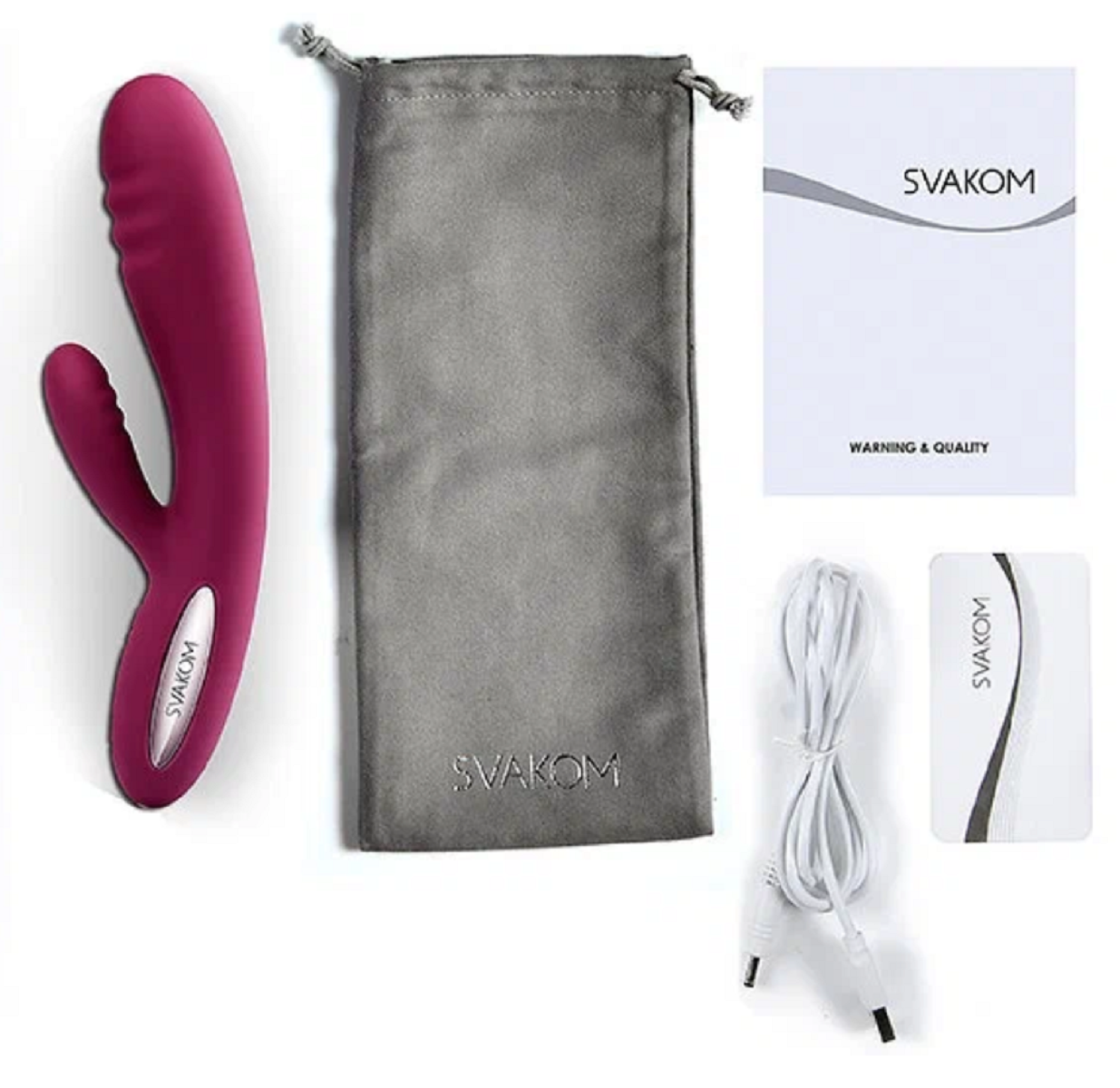 Вибратор с интеллектуальным режимом и функцией нагрева Svakom Adonis. Интеллектуальный режим позволяет девайсу самостоятельно управлять всем процессом. Сначала он мягко пульсирует и дразнит легкой вибрацией, затем деликатно набирает темп и приводит к впечатляющей кульминации. Вам остается только расслабиться и наслаждаться шоу. Вибратор может нагреваться до 38 °C, имитируя прикосновения реального партнера. Два мощных мотора обеспечивают одновременную глубокую стимуляцию клитора и точки G. 7 программ и 5 уровней вибрации отвечают за разнообразие интимных игр. Их можно комбинировать в 35 вариантах и экспериментировать с разными формами наслаждения. Нежная прелюдия, долгий секс-марафон или стремительный оргазм - со Svakom Adonis доступно все. Для более комфортного использования рекомендуем приобрести смазку на водной основе и очищающий спрей Clear Toy 100 мл для обработки изделия.