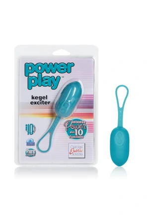 Вибро-яйцо Power play kegel exciter - автономный многофункциональный тренажер, улучшает кровообращение в органах малого таза. Дарит незабываемый оргазм, благодаря 10 функциям сильной вибрации, пульсации и эскалации. Имеет кольцо для комфортного и безопасного использования. Работает от 1-ой батарейки ААА. Размер: длина - 6,25 см, диаметр - 3,75 см. Цвет: Зелёный. Материал: ABS - декор, шнурок; Силикон - вибро-яйцо.