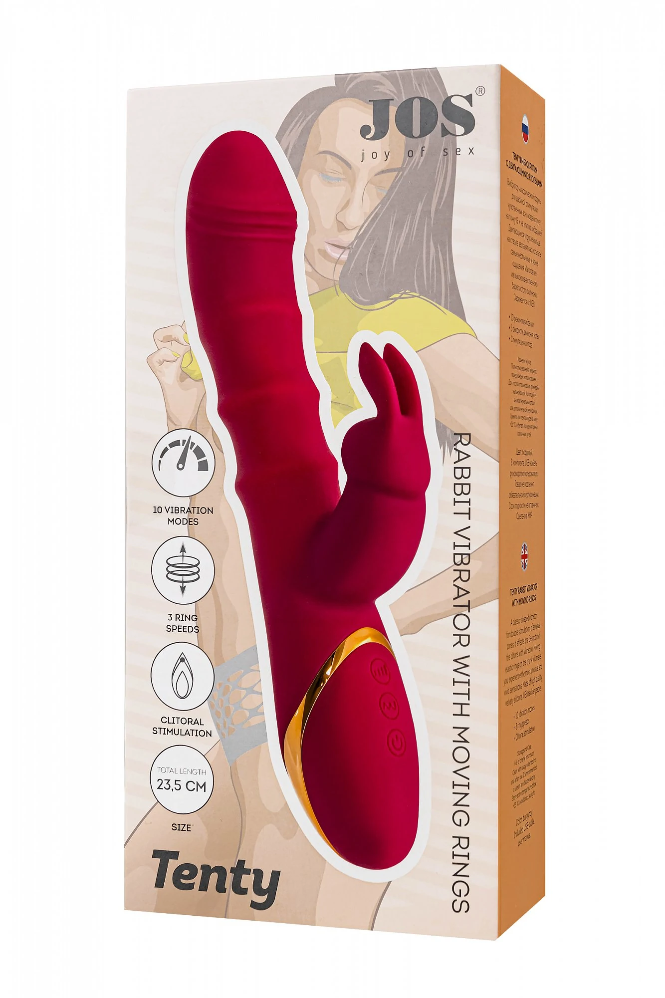 TENTY от Jos — это твой билет в мир чувственных удовольствий и фантазий, где каждый момент наполнен страстью и удивительными ощущениями. Этот виброкролик с двигающимися кольцами создан для тех, кто готов исследовать новые горизонты наслаждения. Классическая форма вибратора идеально подходит для двойной стимуляции, мягко и интенсивно воздействуя на точку G и клитор одновременно. Ты почувствуешь, как твои желания пробуждаются с каждым движением. Фишка TENTY — это подвижные упругие кольца на стволе, которые совершают восхитительные фрикции вверх и вниз, заставляя тебя трепетать от удовольствия. А клиторальный стимулятор в форме забавного кролика со своими нежными ушками нежно касается самых чувствительных точек, выводя оргазмы на совершенно новый уровень. 10 режимов вибрации и 3 скорости движения колец позволяют настроить игрушку под любое твое настроение — от легкой ласки до мощного феерического финала. Изящный, роскошный дизайн в оттенке фуксии с золотыми.