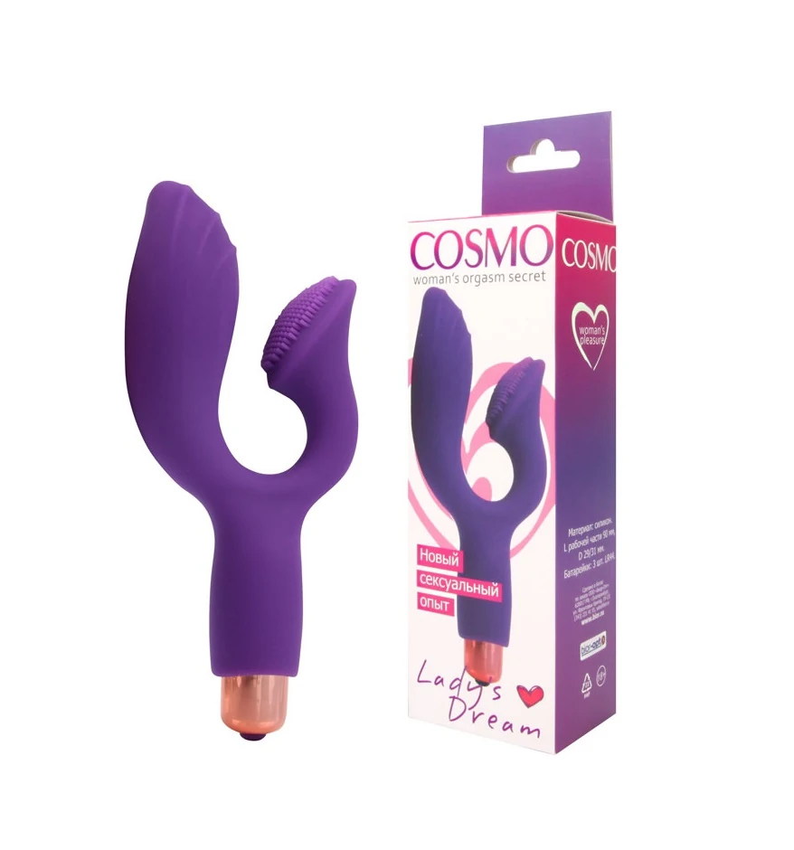 Подарите себе невероятное удовольствие с вибромассажером из коллекции «COSMO»! Фантазийная форма интимного аксессуара позволит стимулировать точку G, а небольшой «отросток» с «шипиками» - клитор. Режим «вибрация» добавит незабываемых ощущений. Эротический аксессуар изготовлен из высококачественного гипоаллергенного силикона. Имеет мягкую, приятную на ощупь поверхность. Выполнен в красивом фиолетовом цвете. Снабжен вибропулей, работающей от сменной батарейки. Размер: общая длина 16 см, рабочая длина 9 см, диаметр 3,1 см. Для более комфортного использования рекомендуем приобрести смазку на водной основе и очищающий спрей Clear Toy 100 мл.