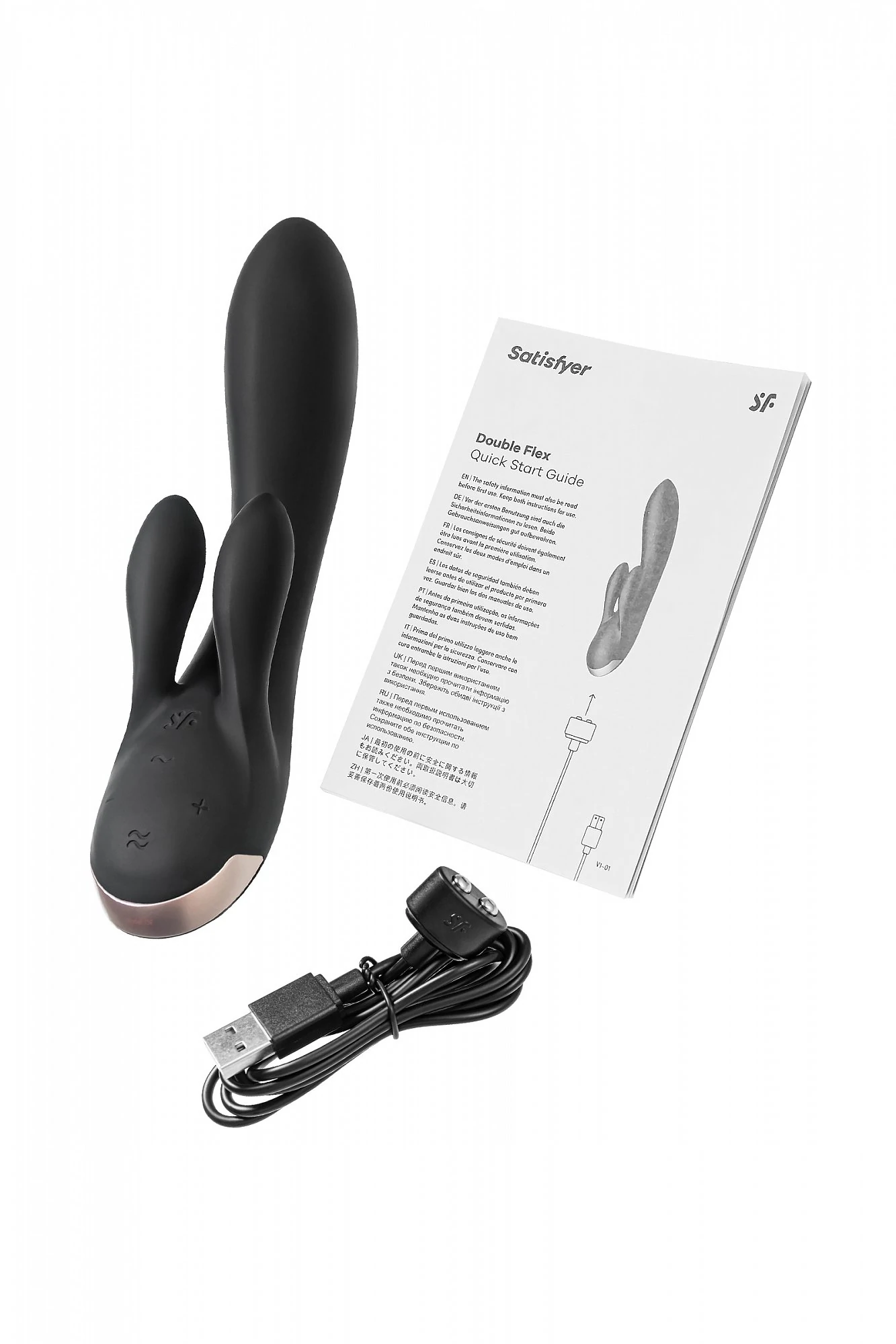 Позвольте себе тройной заряд энергии и наслаждения с вибратором Double Flex от Satisfyer. Этот кролик с тремя сверхмощными моторами погружает в мир одновременной стимуляции точки G и клитора. Гибкий Double Flex легко подстраивается под вашу анатомию, создавая уникальный контур, благодаря технологии Silicone Flex. Клиторальный отросток разделен на два ушка, которыми он обнимает клитор и дарит захватывающее удовольствие половым губам. Вариативность использования радует разнообразием – клиторальные и вагинальный отростки могут работать в разных ритмах. В вашем распоряжении 12 предустановленных режимов вибрации. Испытайте удовольствие по-настоящему с бесплатной функцией управление при помощи смартфона с поддержкой Bluetooth через приложение Satisfyer Connect, доступное на Android и iOS. Создавайте собственные уникальные режимы вибрации, существенно расширив возможности предустановленных режимов. Девайс способен вибрировать даже в такт музыке. Размер: длина 15,5 см, диаметр 3,4 см. Цвет: черный.