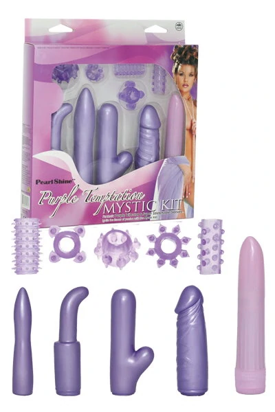 Вибронабор сиреневый с насадками разных форм и кольцами. Всего 10 шт.