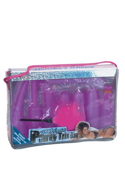 Сумочка для секс-вечеринок. В комплект входят: вибратор с регулировкой скорости длиной 11,7 см, семь помогающих достичь оргазм насадок на вибратор и перышко для ласк. В этом наборе есть все, что нужно для получения удовольствия: и влагалищные насадки с различным типом стимуляции, и насадки для возбуждения G-точки, и анальные насадки. А перышко для ласк подарит необычные пикантные ощущения. Длина вибратора 12 см, диаметр вибратора 3 см.