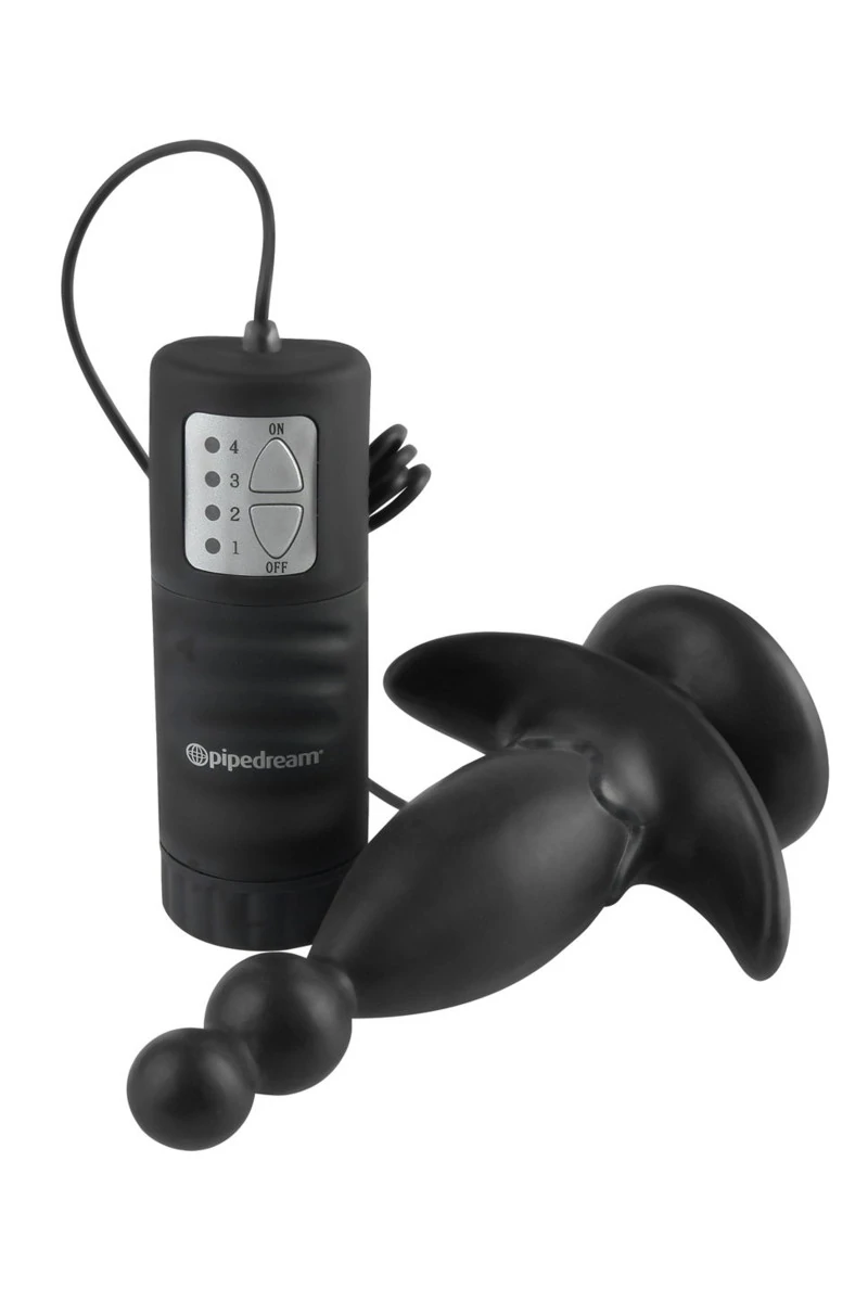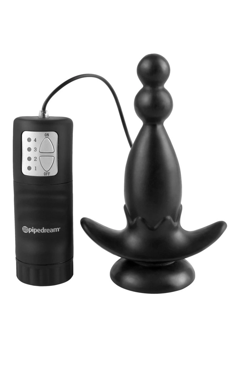 Анальная мультискоростная вибровтулка на присоске с проводным пультом дистанционного управления. На кончике втулки расположены две небольшие бусины, обеспечивающие легкий ввод. Расширенное основание удерживают втулку на месте, даже когда страсти накаляются. Мощная присоска позволяет зафиксировать втулку на гладкой поверхности. Гипоаллергенна. Унисекс. Длина вставной части втулки - 10,8 см. Материал не содержит фталатов. В комплект включены: два напальчника, дезинфецирующий крем, любрикант, очиститель для игрушек. Батарейки в комплект не включены.